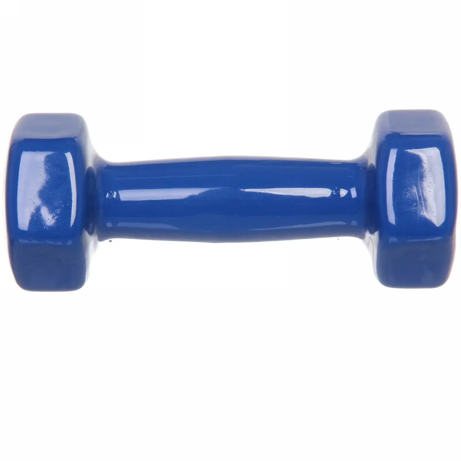 Гантель 1,5 кг с шестигранными краями, нескользящая рукоятка, металл/ПВХ, синий/красный