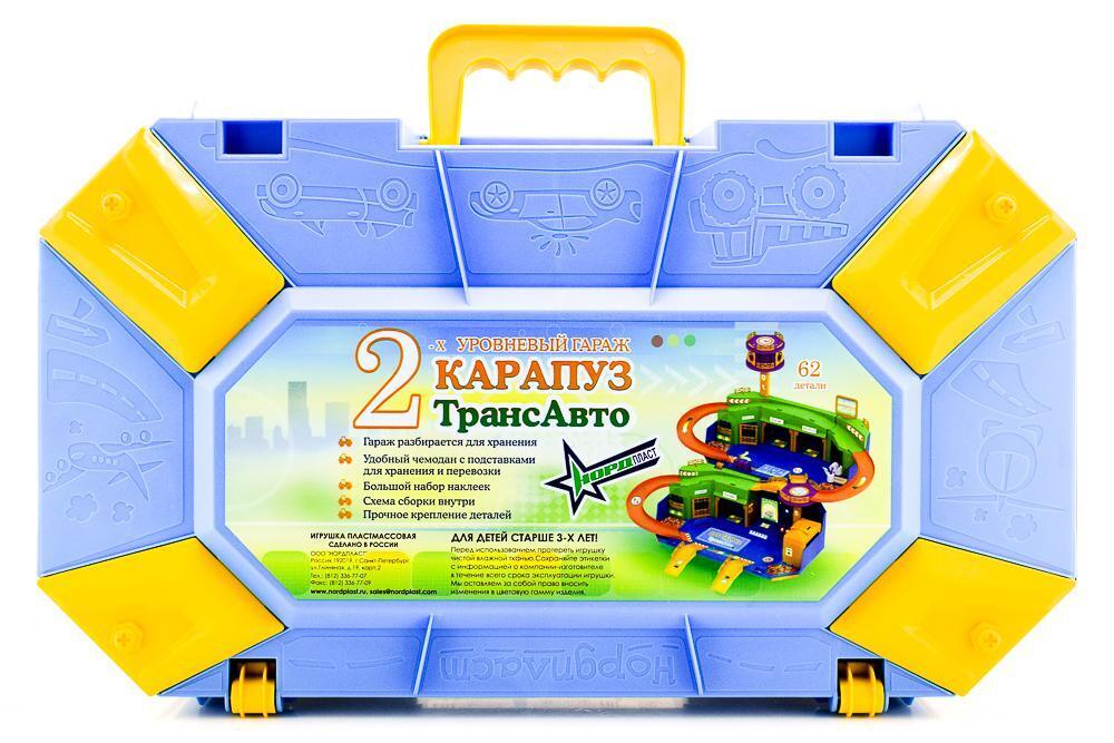 Гараж-чемодан 'Карапуз ТрансАвто', раскладывающийся, 62 детали, пластик, 62х65х43см