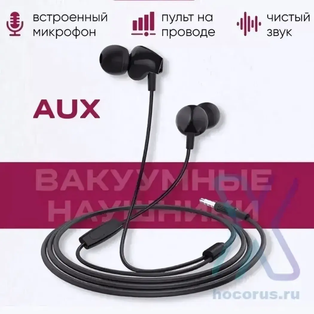 Наушники вакуумные HOCO M60, черные, с микрофоном и пультом, кабель 1.2м