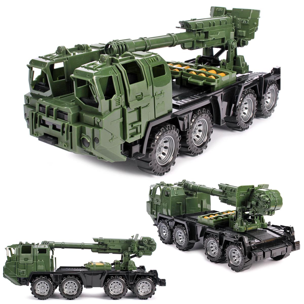 Эта модель гаубицы «М» со снарядами идеально подойдет для коллекционеров и любителей военной тематики. Сделанная из качественного, легкого пластика, она безопасна и прочна, позволяя детям безопасно играть и развивать фантазию. Тягач оснащен двумя кабинами и открывающимися дверьми, что создаёт реалистичный эффект. Ствол орудия поднимается и поворачивается, что помогает моделировать реальные боевые сценарии, а в комплект входят два ящика с боеприпасами для полного погружения. Благодаря высокой деталировке, модель отлично смотрится как в игре, так и в коллекции.