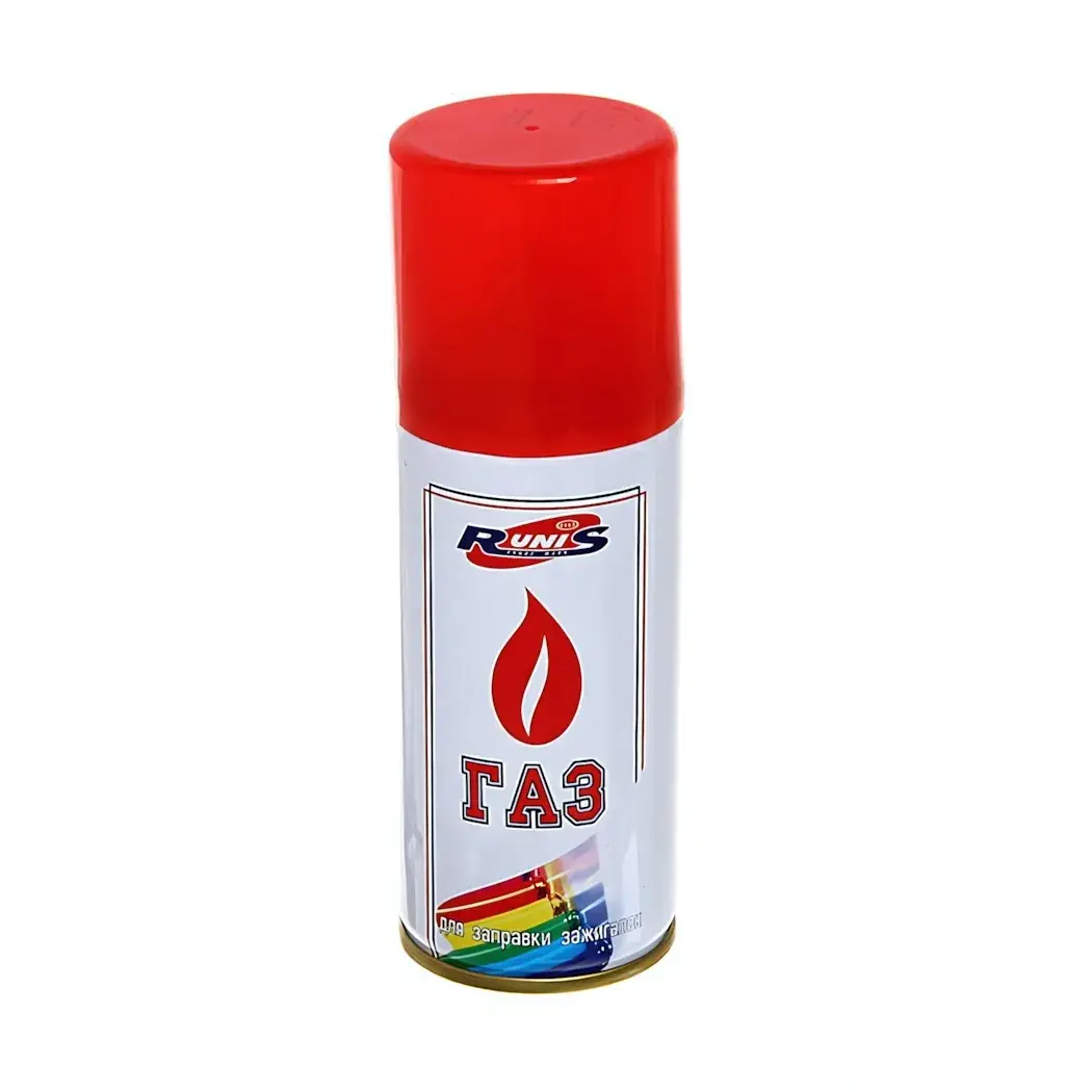 Газ для зажигалок 'RUNIS' 140мл, белый металлический баллон с насадками