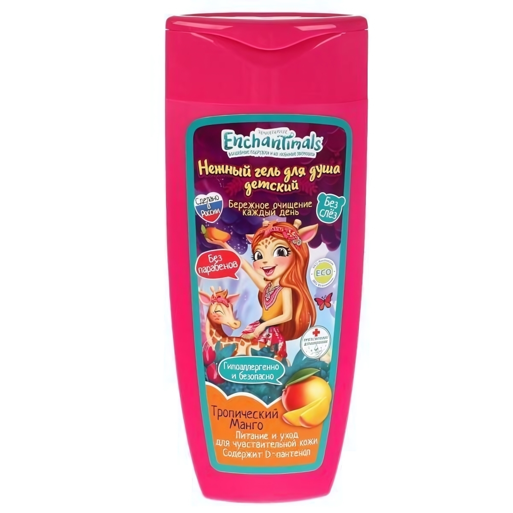 Детский гель для душа «Enchantimals» 250мл, тропический манго, гипоаллергенный, без слёз, натуральные ингредиенты