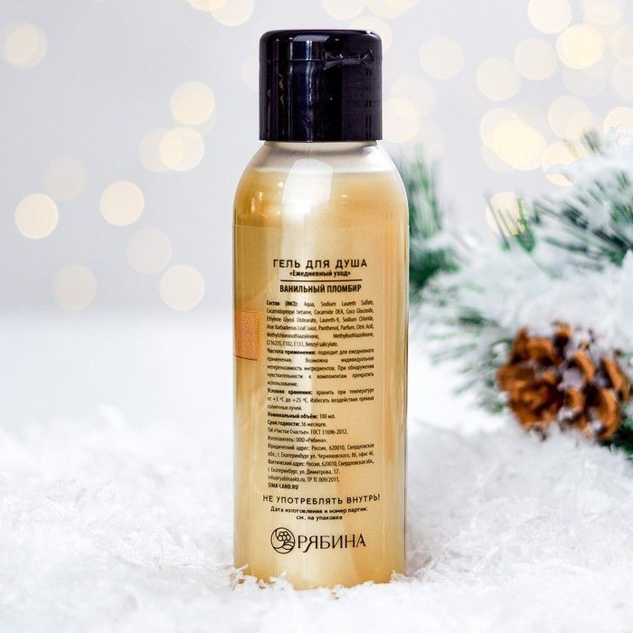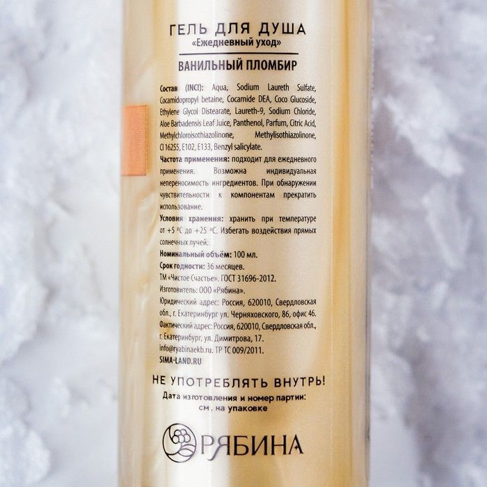 Объём геля составляет 100 мл, что делает его идеальным для домашнего использования или путешествий. Упаковка выполнена из качественного пластика, а её дизайн с элементами золотистого цвета и изображением мороженого и цветка ванили добавляет эстетики в вашу ванную комнату. Не забывайте, что гель предназначен только для наружного применения, избегайте попадания в глаза и не употребляйте внутрь.