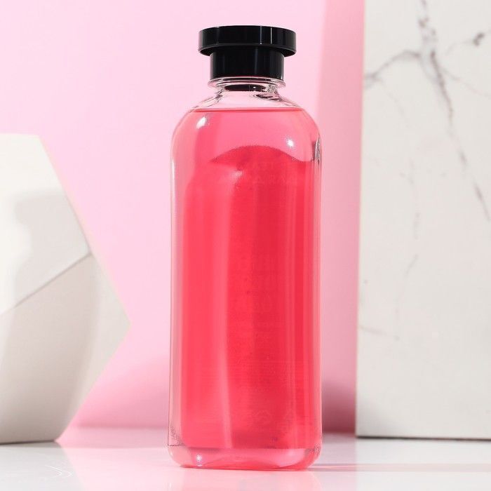 Объём флакона составляет 300 мл, что делает его удобным для использования в домашних условиях или в поездках. Прозрачная бутылка с округлой формой и черной крышкой не только стильная, но и практичная. Гель имеет ярко-розовый цвет, что добавляет визуального удовольствия при использовании.