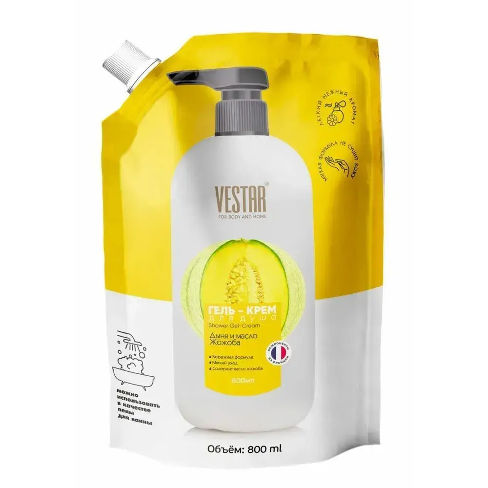 Гель-крем для душа с маслом жожоба и дыней, 800 мл, бережный уход, мягкая кожа