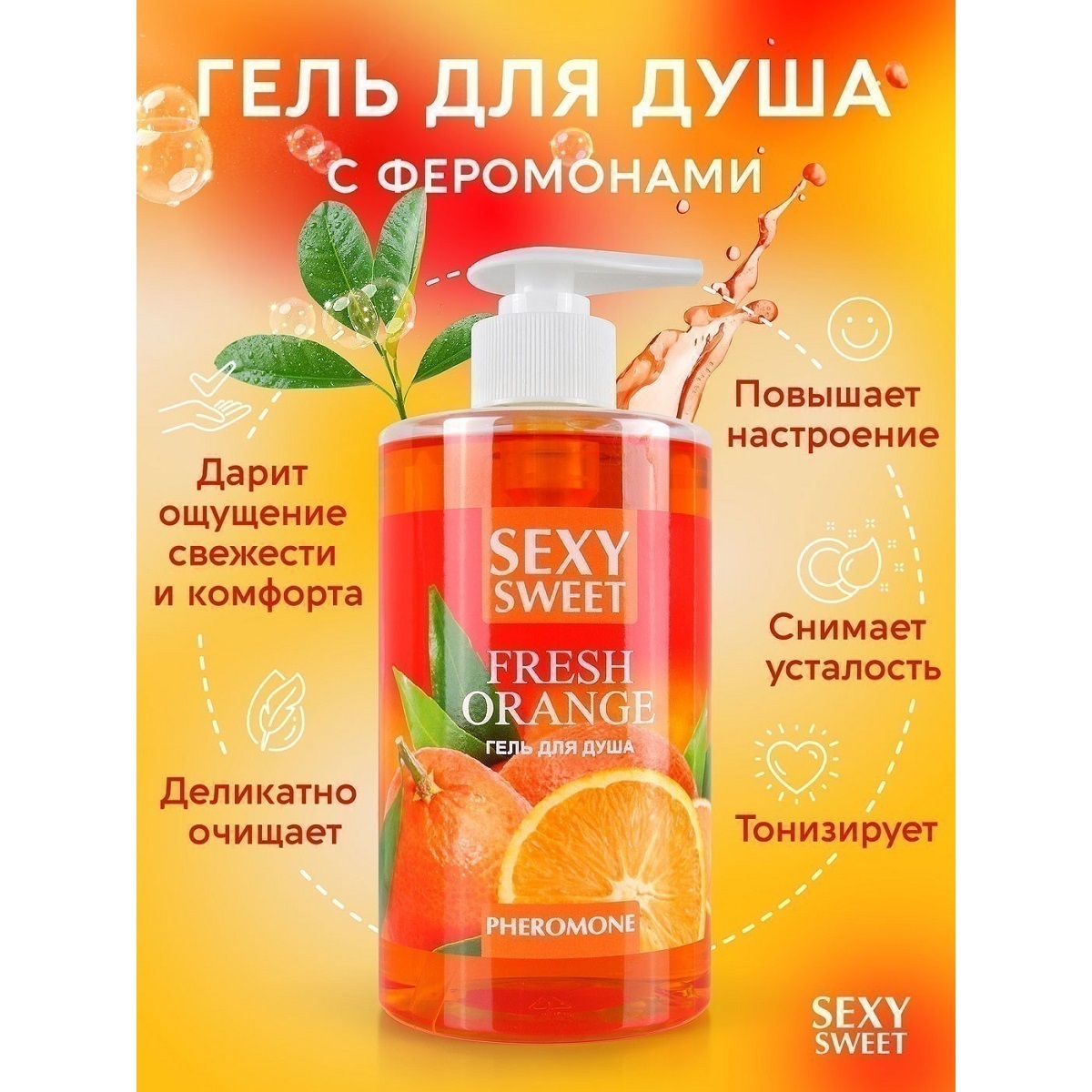 Гель для душа с феромонами и апельсином, 430 мл, тонизирует и дарит свежесть, водная основа