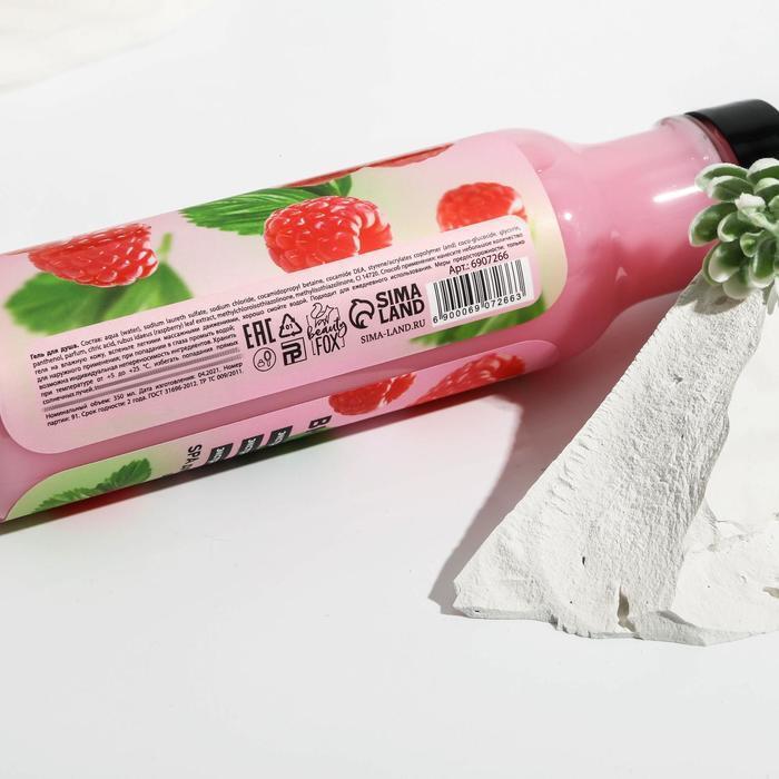 Объем флакона составляет 350 мл, что позволяет использовать продукт долгое время. Упаковка оформлена в виде цилиндрической бутылки с черной крышкой и украшена графическими изображениями малины и зеленью, что подчеркивает натуральность продукта. Гель для душа «Малиновый смузи» — это ваш идеальный спутник для relax time.