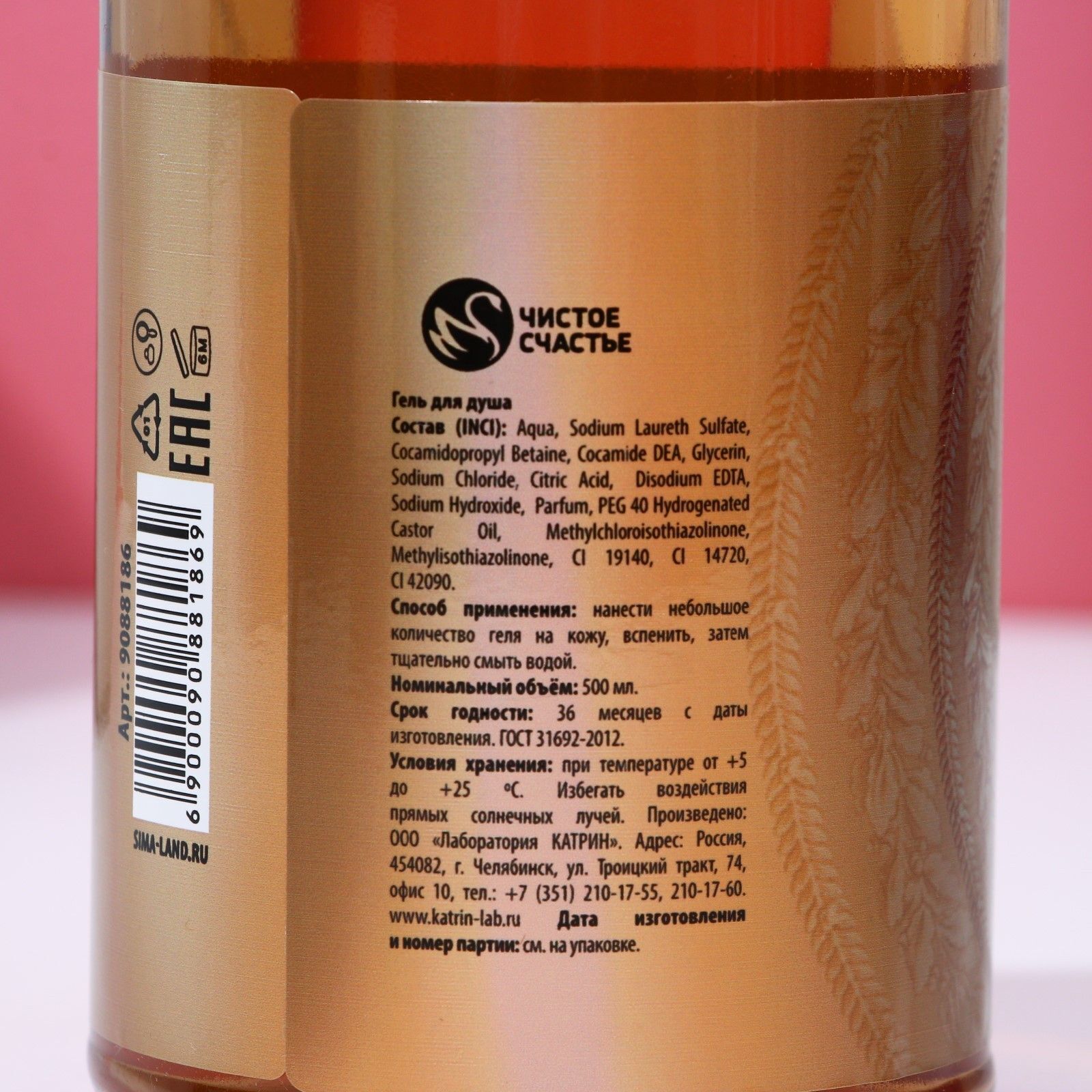 Гель для душа «Мечтай!» представлен в удобной упаковке объемом 500 мл, выполненной из прозрачного пластика. Это позволяет вам контролировать количество оставшегося продукта. Упаковка имеет стильный дизайн с логотипом «Чистое счастье», что добавляет эстетическую ценность вашему ванной пространству.