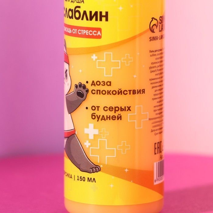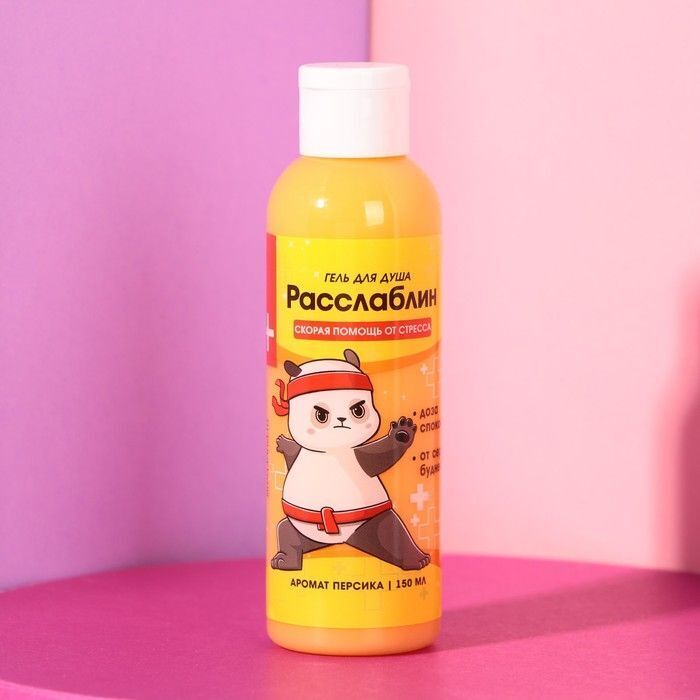 Объем геля составляет 150 мл, что делает его удобным для хранения и использования. Упаковка выполнена в ярком желтом цвете и оформлена с изображением милого персонажа — панды, что добавляет элемент игривости и позитивного настроения. Гель для душа «Расслабин» станет отличным дополнением к вашей рутине личной гигиены и подарит вам минуты наслаждения каждый день.