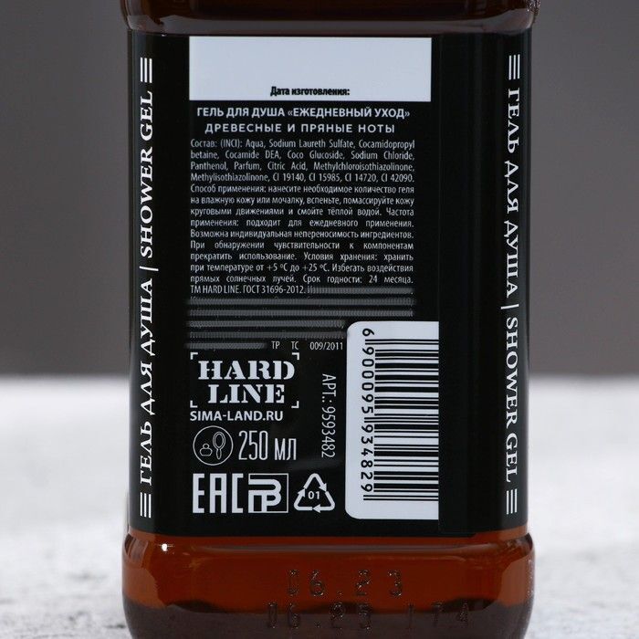 Объем упаковки составляет 250 мл, что делает его удобным для использования как дома, так и в поездках. Упаковка выполнена в стильном черном цвете с элементами коричневого, что подчеркивает мужественность продукта. Гель для душа Hard Line — это не просто средство для мытья, это ваш личный ритуал ухода за собой.