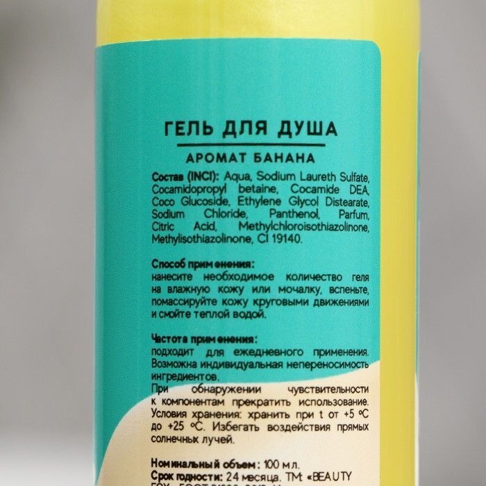 Гель для душа «Сливочный банан» представлен в удобной упаковке с черной крышкой, что позволяет легко дозировать необходимое количество продукта. Его яркий желтый цвет и стильный дизайн делают его не только полезным, но и привлекательным элементом вашей ванной комнаты. Срок хранения составляет 24 месяца, что позволяет вам наслаждаться продуктом долгое время.