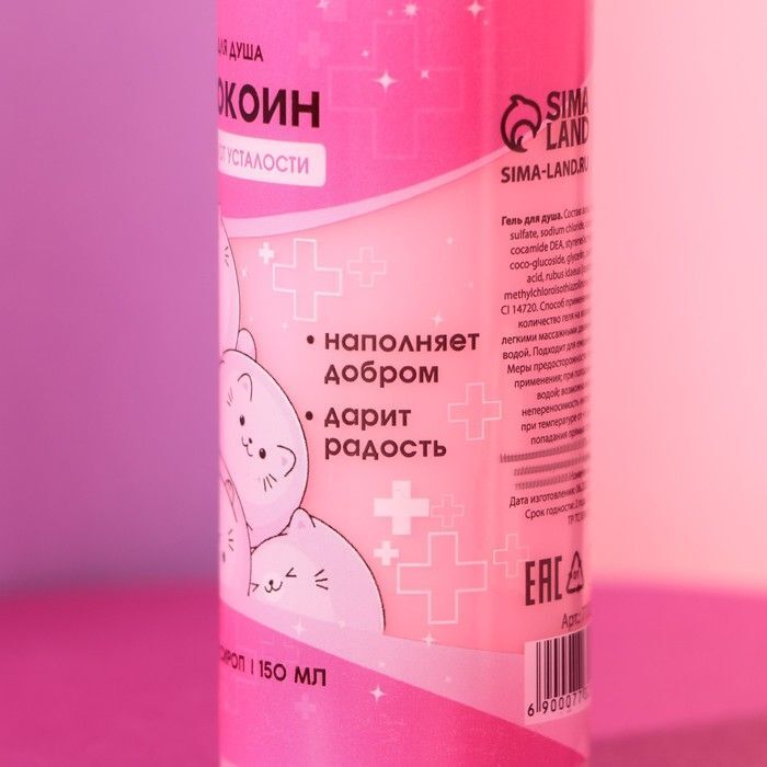 Объем геля составляет 150 мл, что делает его удобным для использования как дома, так и в поездках. Упаковка выполнена в ярком розовом цвете с игривыми графическими элементами, что добавляет позитивного настроения. Не упустите возможность сделать ваш уход за телом более приятным и эффективным с гелем для душа «Успокоин»!