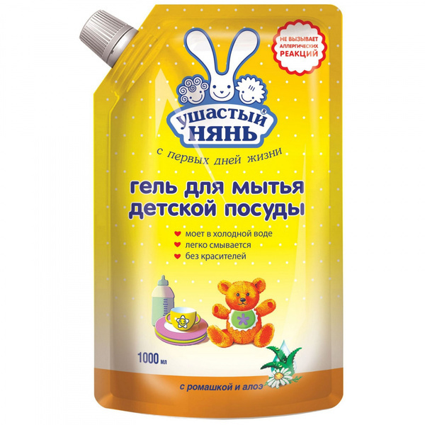 Гель представлен в удобной упаковке с дозатором, что облегчает его использование. Основной цвет упаковки — жёлтый с белыми точками, что делает его привлекательным для детей. Улыбающееся лицо и милый медвежонок на упаковке создают позитивное настроение во время мытья посуды. Выбирая гель Ушастый Нянь, вы выбираете качество и безопасность для вашего ребенка.