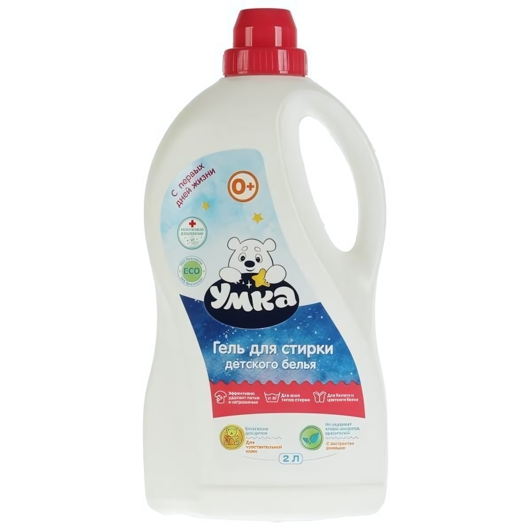 Выбирая гель «Умка», вы получаете продукт, который не содержит хлора, фосфатов и красителей, что делает его безопасным для детей. Он полностью вымывается в процессе полоскания, что исключает риск раздражения на нежной коже малыша. Упаковка объемом 2 литра обеспечивает длительное использование, а удобная форма контейнера с ручкой делает его практичным в использовании.