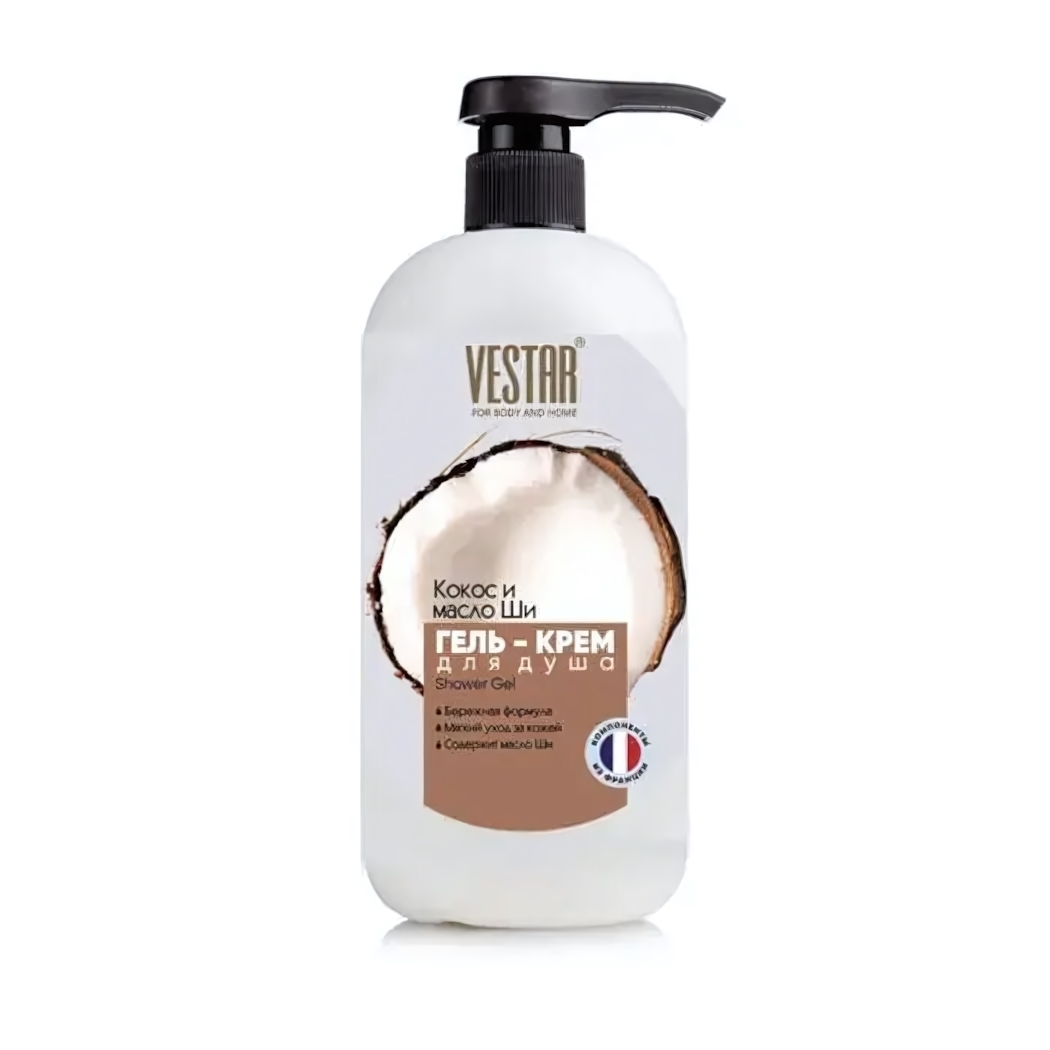 Гель-крем для душа с кокосом и маслом ши, увлажняющий, 0.8 л, белая бутылка с дозатором