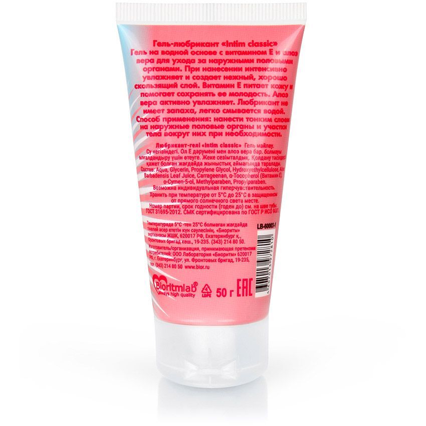 Гель-лубрикант «Intim Classic» на водной основе с алоэ и витамином Е, 50 гр, увлажнение и защита слизистых