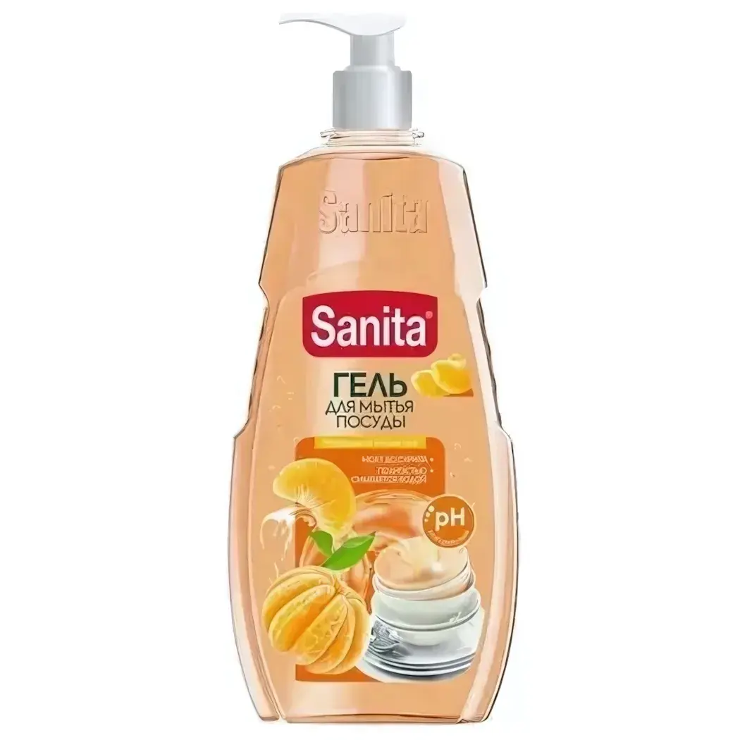 Гель для мытья посуды SANITA, мандарин и белый чай, 900 г, эффективное удаление жира