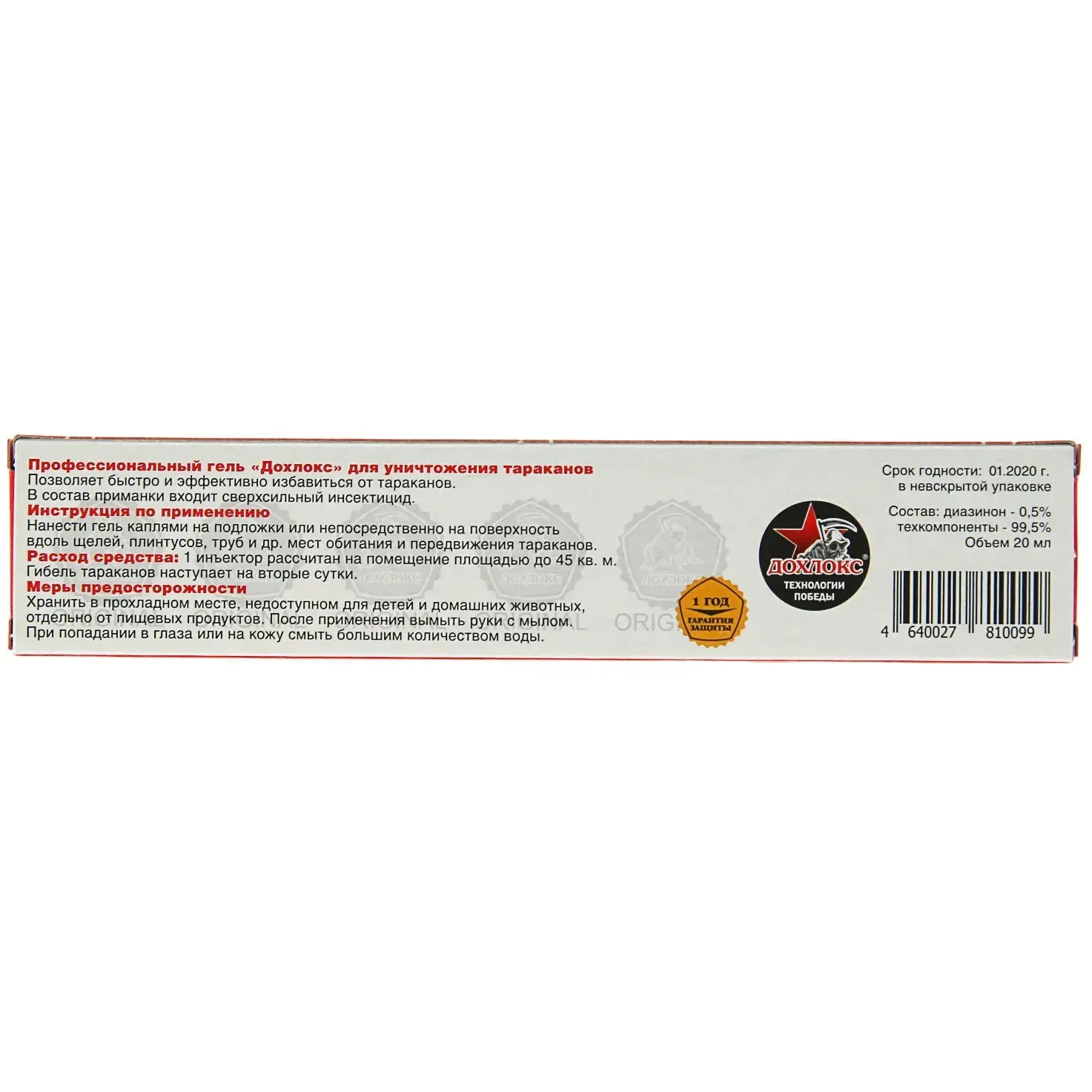 Эффективный гель «Дохлокс» 20 мл для борьбы с тараканами в жилых помещениях