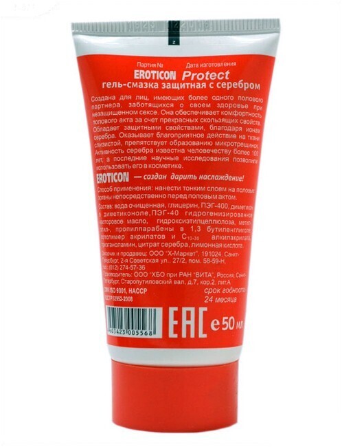 Гель-смазка 'Protect' с серебром, 50мл, на водной основе, защитный