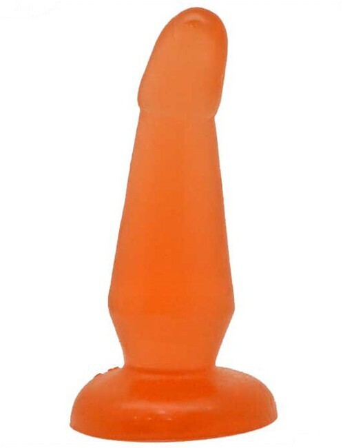 Анальная пробка гелевая изогнутая, оранжевый, 35х130 мм, удобная форма, гипоаллергенный материал