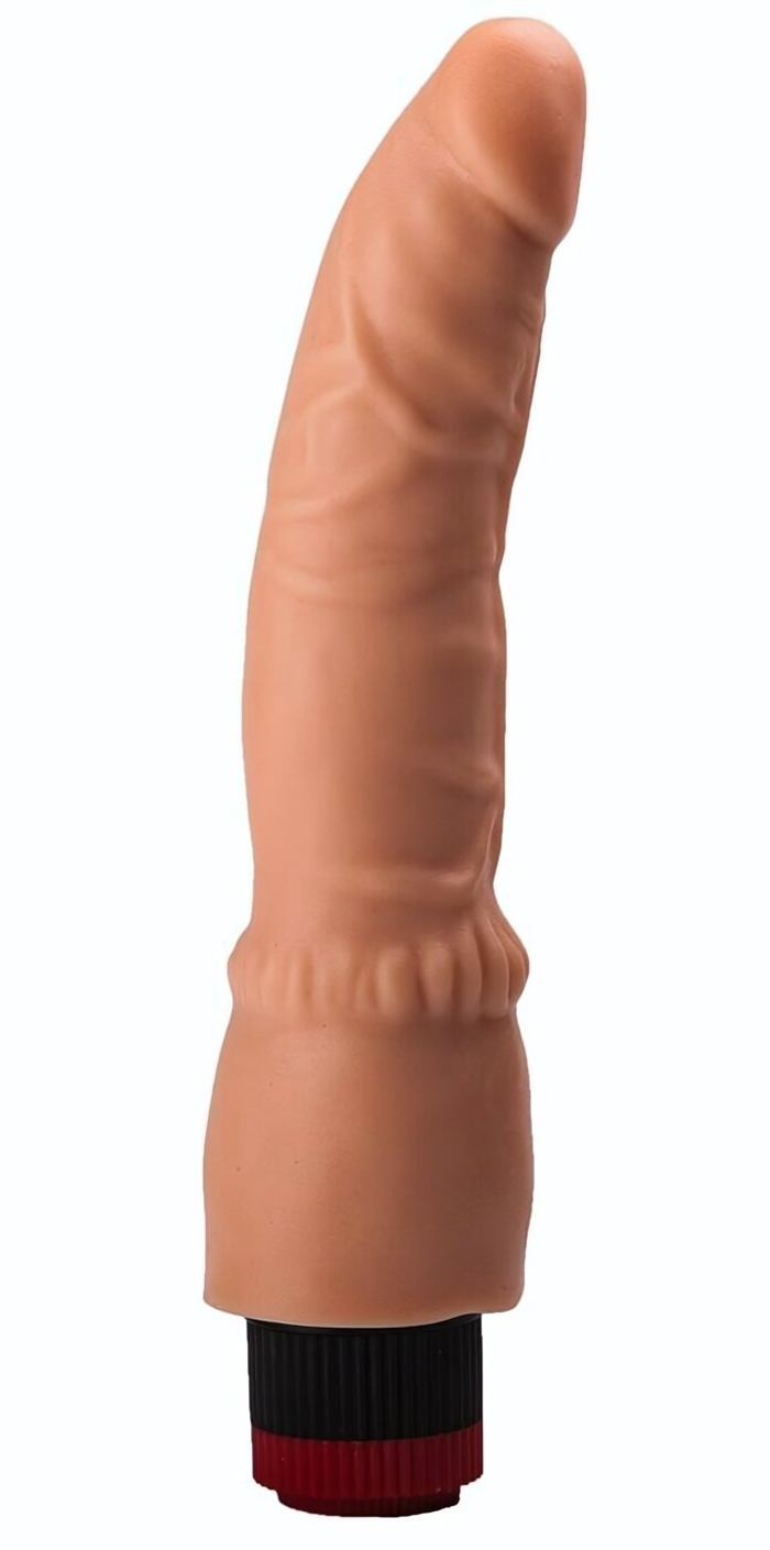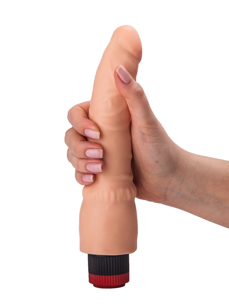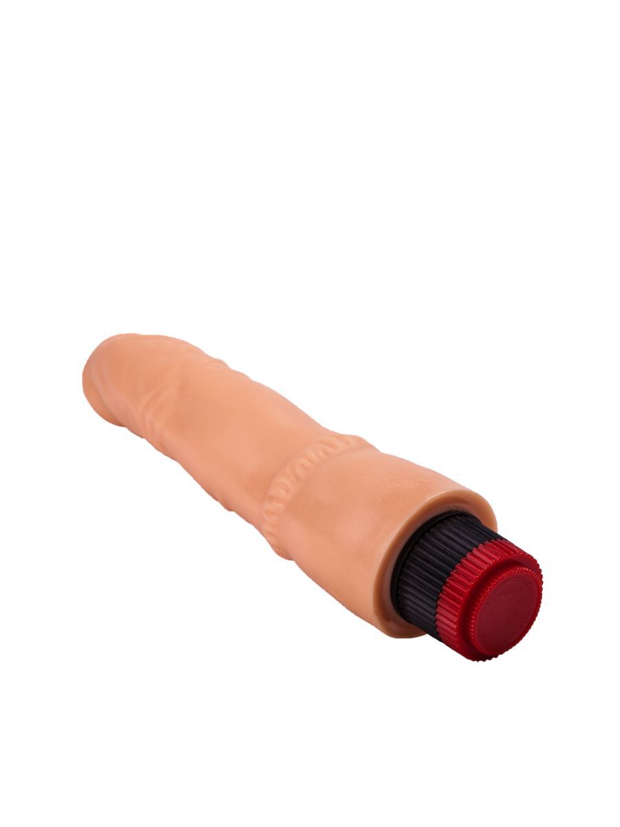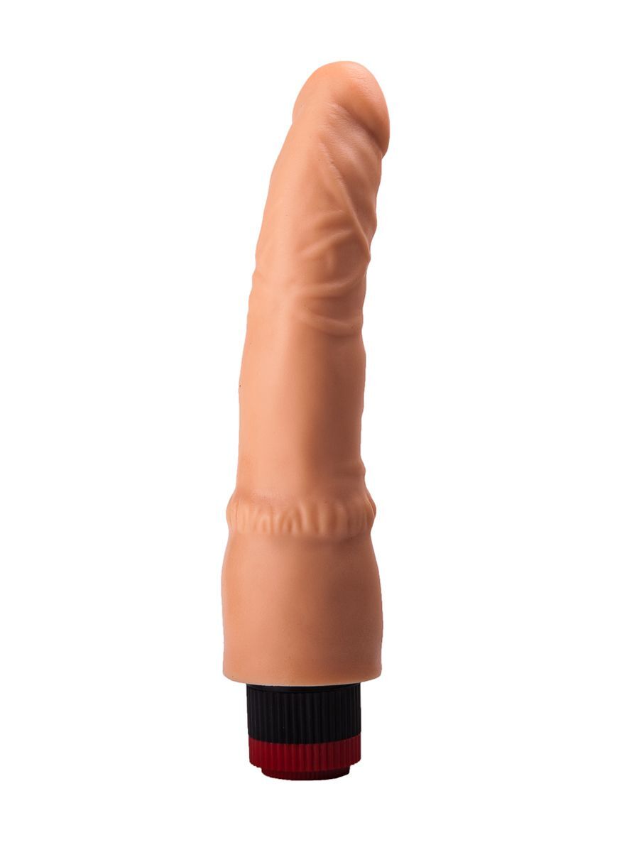 Вибратор гелевый с анальным ограничителем, 19,3 см, телесный, ПВХ, регулируемая вибрация