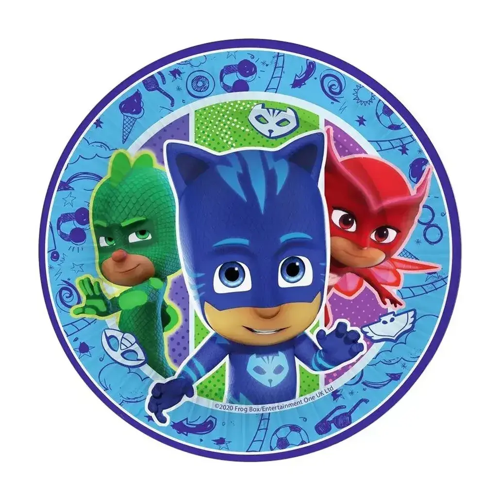 Набор из 6 бумажных тарелок с забавными персонажами станет идеальным дополнением детского праздника. Яркие принты с героями в масках создают атмосферу веселья и радости.