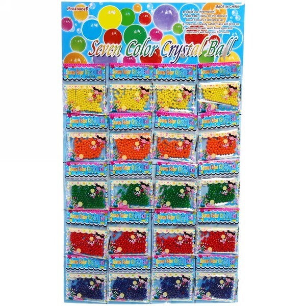 В упаковке вы найдете 20 пакетиков с кристаллическими шарами, которые представлены в семи различных цветах: желтый, оранжевый, красный, зеленый, синий, фиолетовый и прозрачный. Каждый шарик имеет равномерный размер и гладкую поверхность, что делает их удобными в использовании. Упаковка выполнена из прозрачного материала, позволяющего видеть содержимое и легко контролировать количество оставшихся кристаллов.