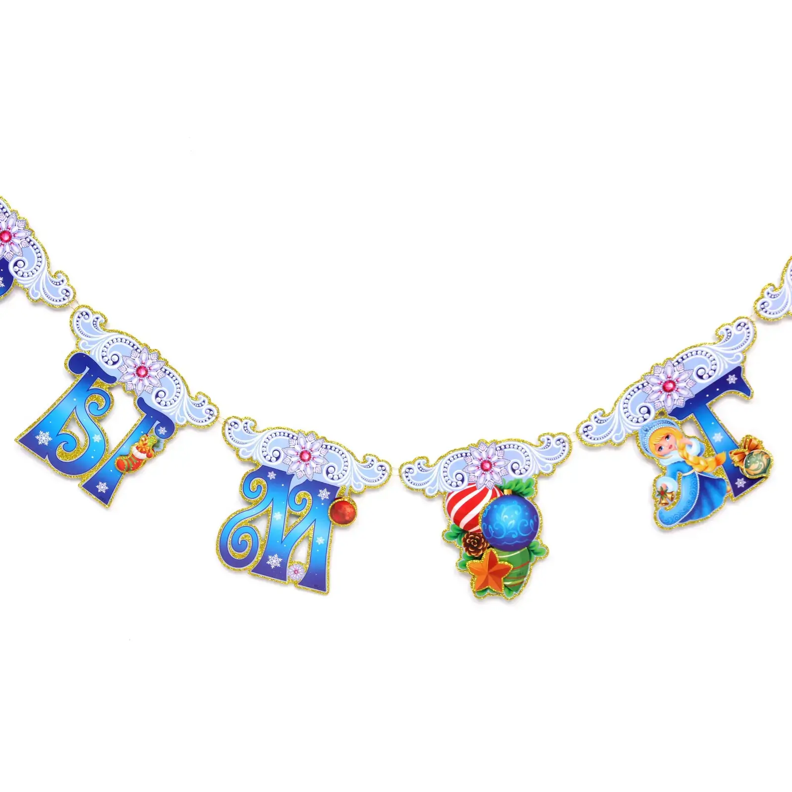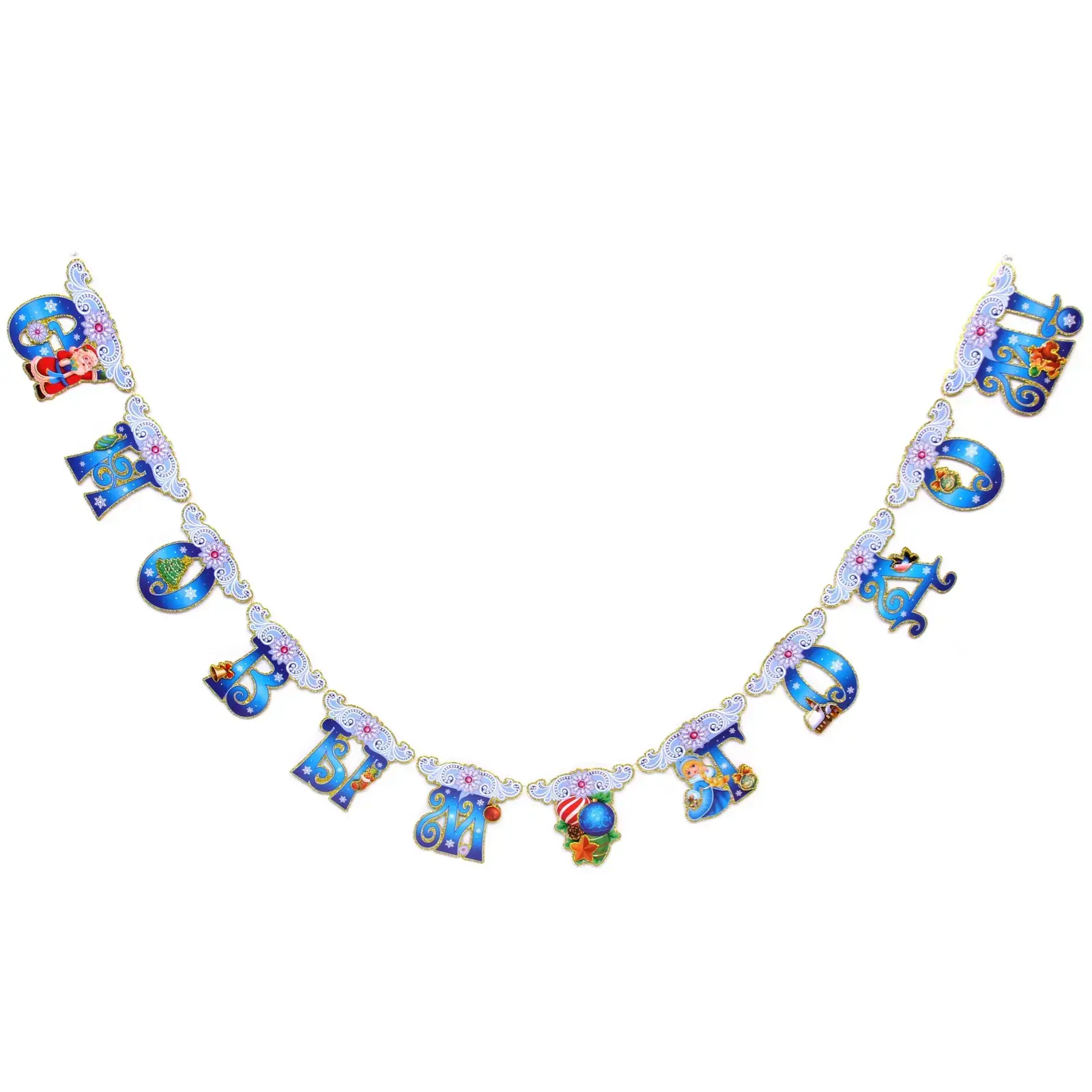 Эта гирлянда станет идеальным украшением для вашего дома в новогодний период. Она выполнена из качественного картона и имеет длину 2,55 метра, что позволяет легко разместить её в любом интерьере. Яркие цвета и новогодние изображения, такие как Санта-Клаус, снежинки и ёлки, создадут атмосферу праздника и радости.