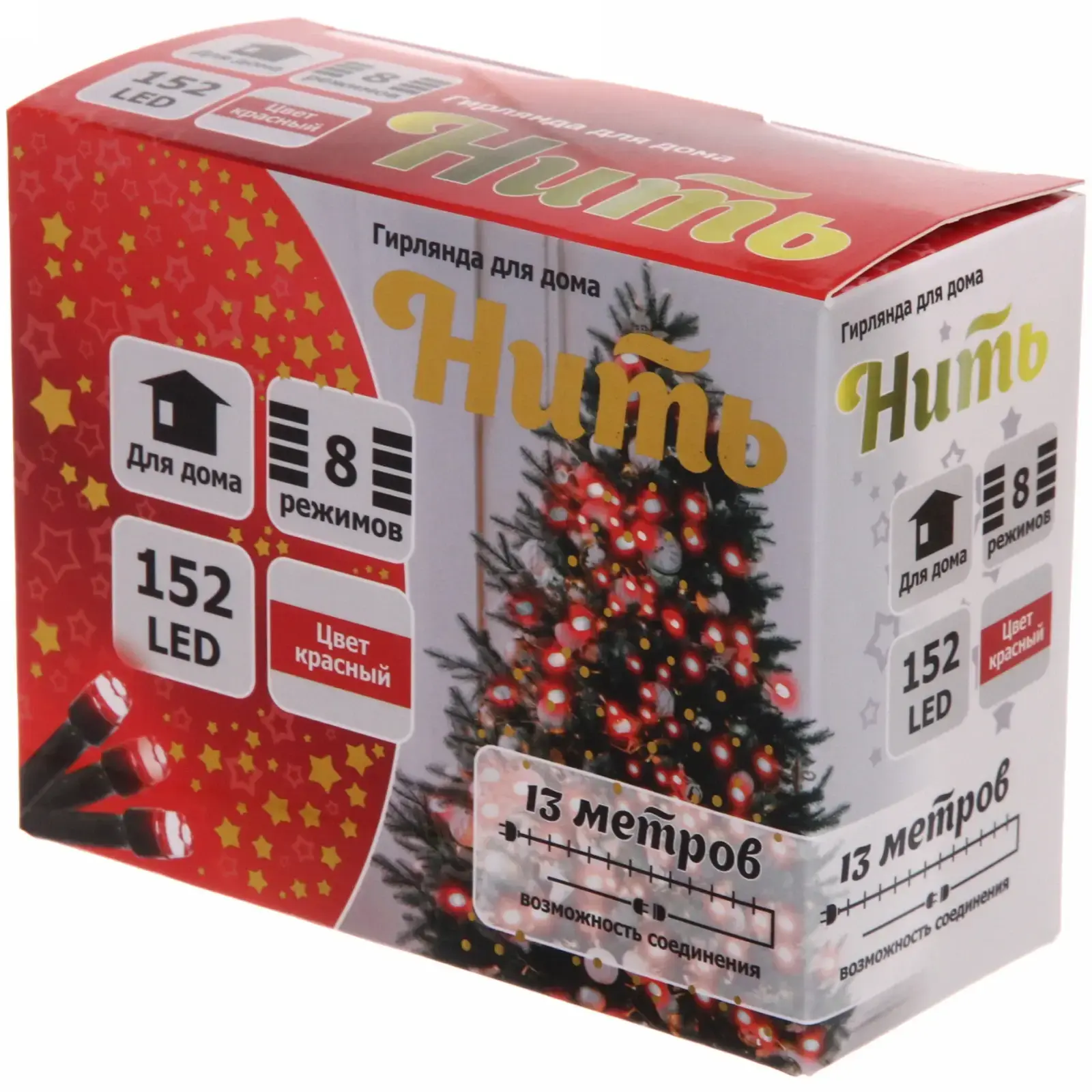 Гирлянда для дома 13м 152 лампы LED зеленый.пров.,8 реж, IP-20, Красный (возможность соединения)