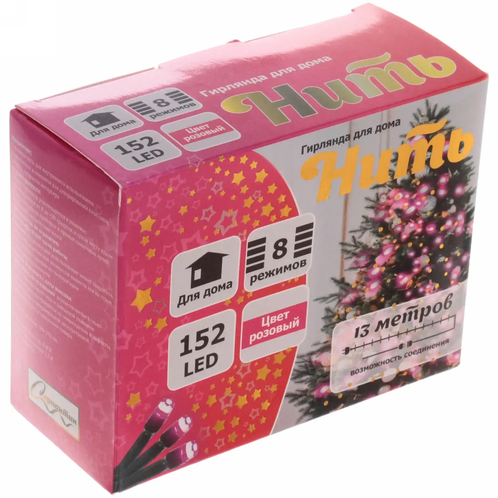 Гирлянда для дома 13м 152 лампы LED зеленый.пров.,8 реж, IP-20, Розовый (возможность соединения)