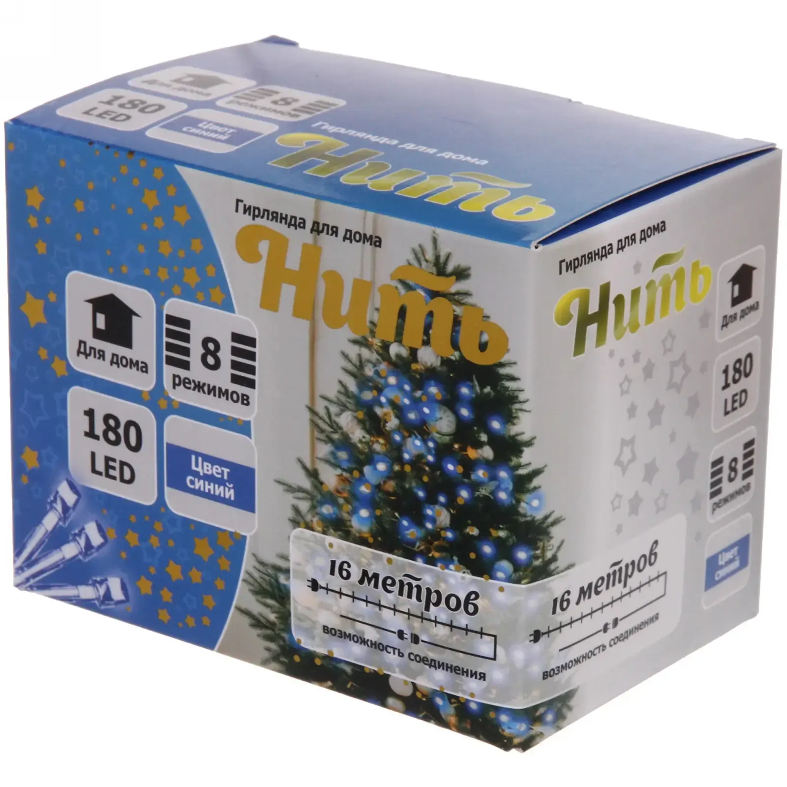 Создайте волшебное настроение долгими зимними вечерами с гирляндой-нитью длиной 16 метров. Яркие синие светодиоды сразу привлекают внимание и наполняют комнату ощущением праздника и спокойствия. Эта гирлянда отлично подойдет для украшения окон, елки, стен, дверных проемов и витрин, эффектно подчеркивая интерьер современными нотами и добавляя тепла в любое пространство.
