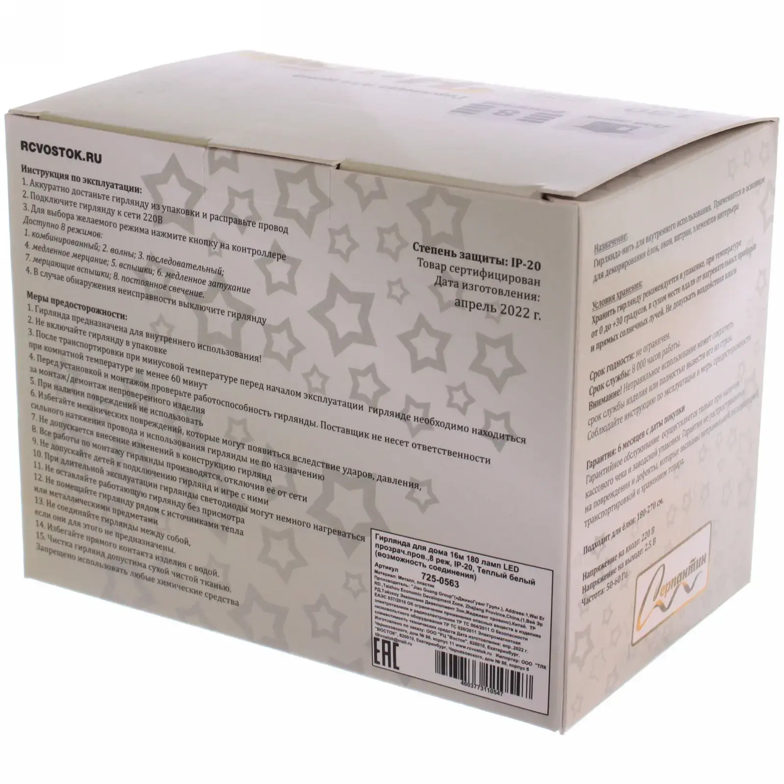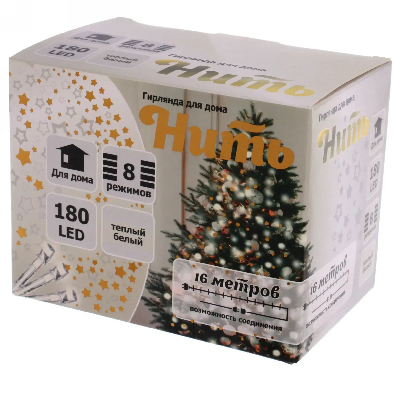 Гирлянда светодиодная «Нить» длиной 16 метров с 180 LED-лампами погружает ваш дом в ощущение тепла и праздника с первых секунд. Тёплый белый свет нежно освещает помещение, создавая волшебную обстановку, которую хочется сохранить как можно дольше. Эта гирлянда — универсальный декор для любого интерьера, будь то гостиная, детская или спальня.