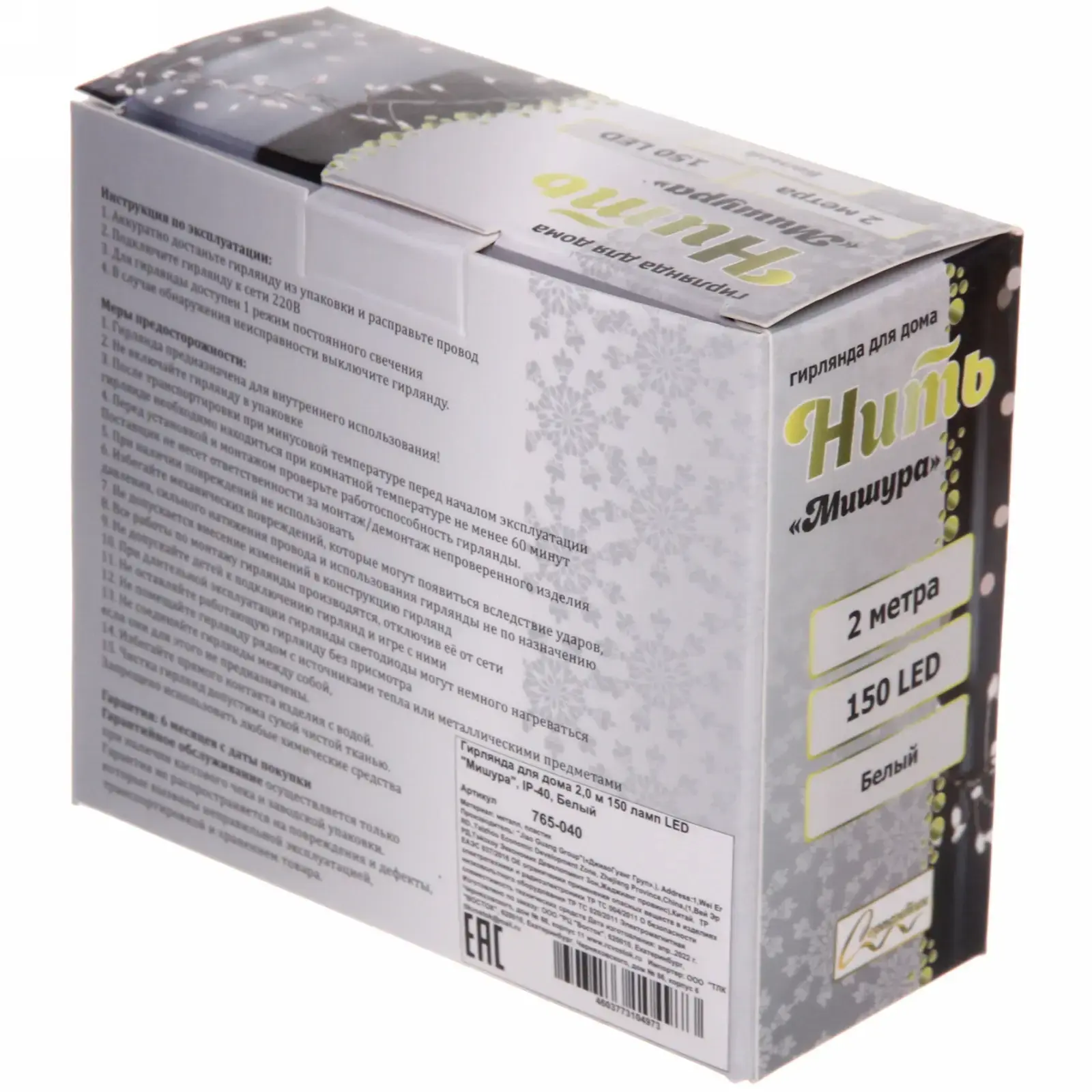Гирлянда имеет длину 2,0 метра и состоит из 150 светодиодов, что позволяет равномерно распределить свет по всей длине. Она выполнена из качественных материалов, что гарантирует её надежность и долговечность. Не упустите возможность преобразить ваше пространство с помощью гирлянды «Мишура»!