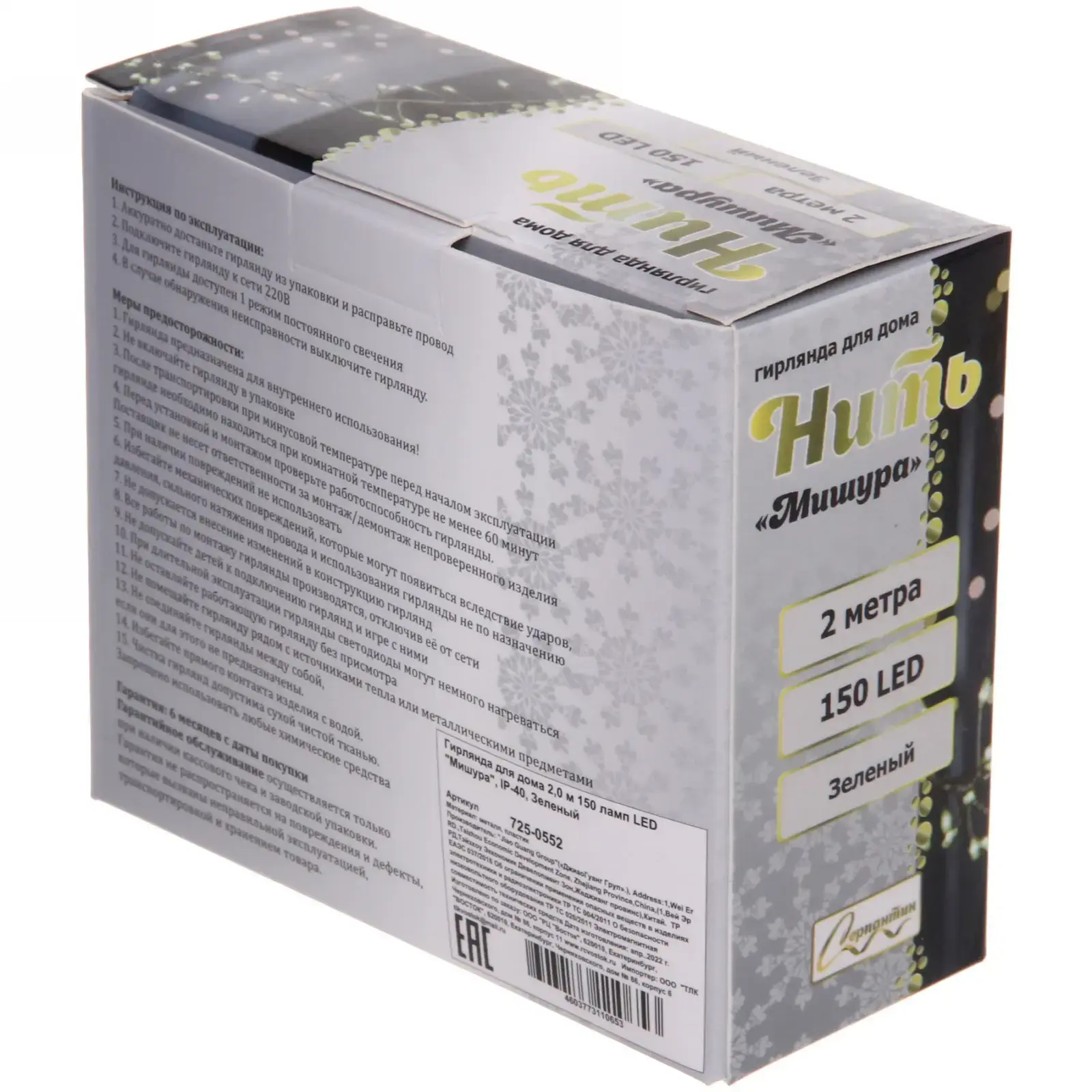 Гирлянда светодиодная «Мишура» создана для тех, кто хочет легко добавить уют и атмосферу праздника в интерьер. Эффектное сочетание 150 зеленых светодиодов и гибкого провода позволят реализовать любые декоративные идеи, создавая игру света и радости в вашем доме.