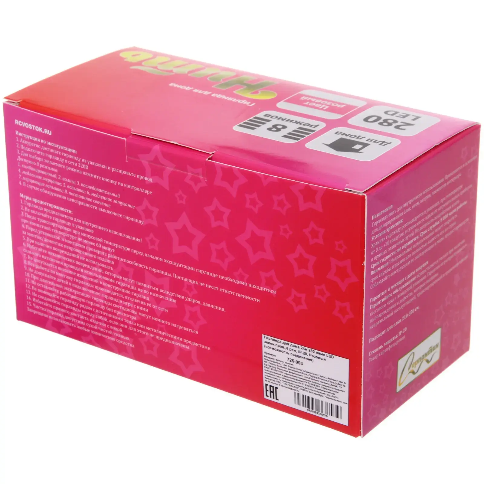 Погрузитесь в атмосферу уюта и волшебства с гирляндой длиной 24 метра на 280 светодиодов. Мягкий розовый свет создаёт особое ощущение тепла и радости, идеально подходящее для праздников, вечеринок и тихих вечеров дома. Возможность соединения нескольких гирлянд позволяет воплотить самые яркие идеи оформления — от декора новогодней ёлки до зонирования пространства для особых случаев.