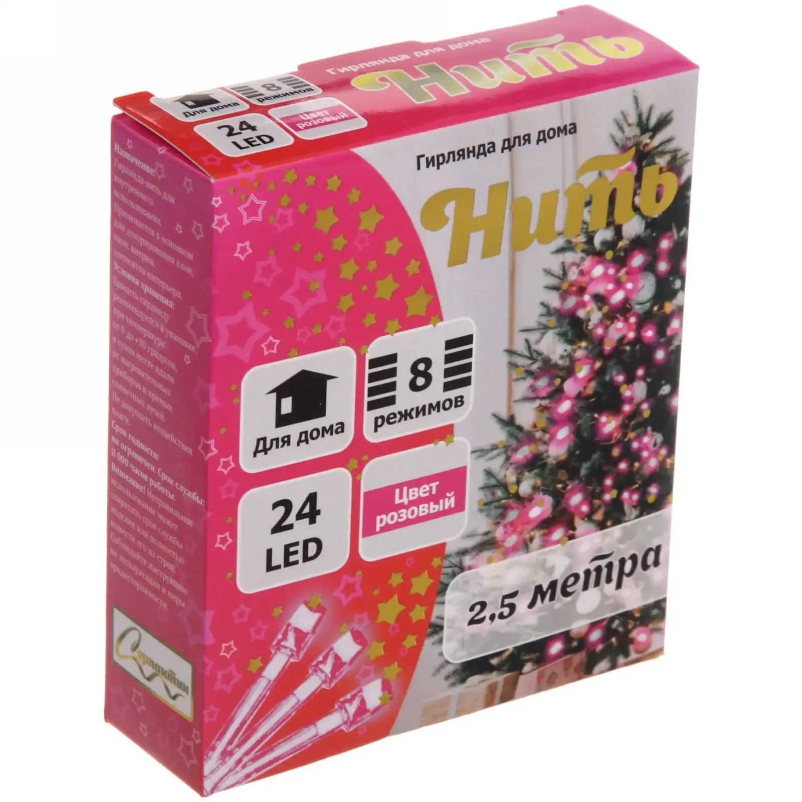 Гирлянда LED длиной 2,5 метра с 24 яркими розовыми лампами — это идеальное решение для создания уютного и сказочного освещения в вашем доме. Она станет отличным дополнением к новогоднему декору, а также украсит любое мероприятие, придавая ему особую атмосферу. Благодаря прозрачному проводу гирлянда легко вписывается в любой интерьер, не отвлекая внимание от основного декора.