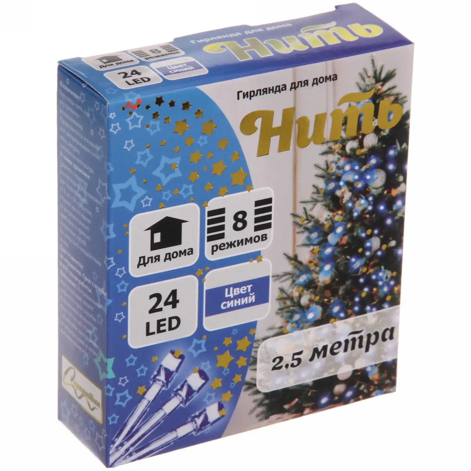 Гирлянда для дома 2,5м 24 лампы LED прозрач.пров.,8 реж, IP-20, Синий