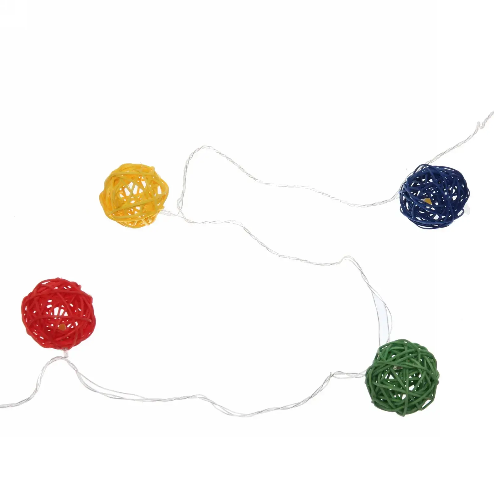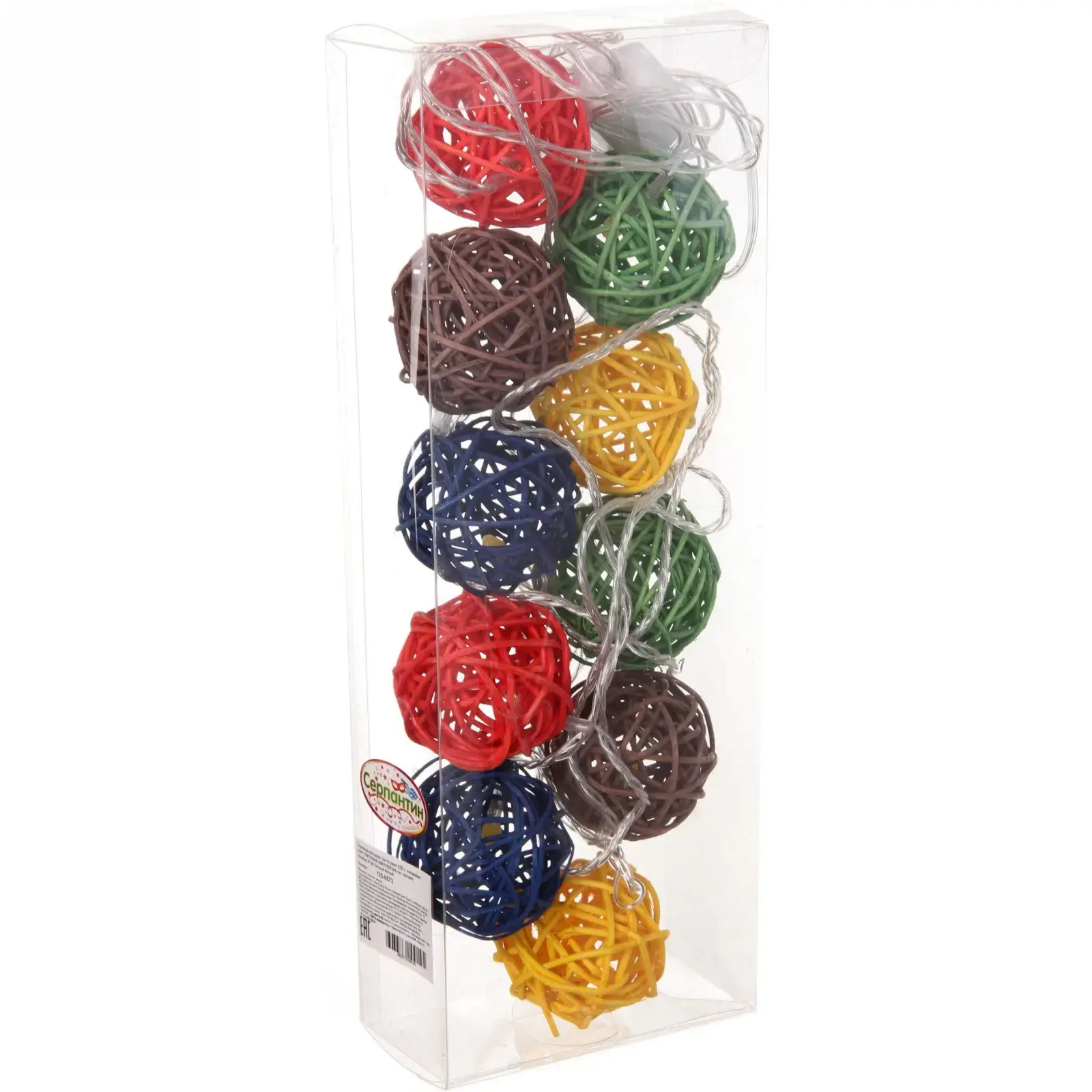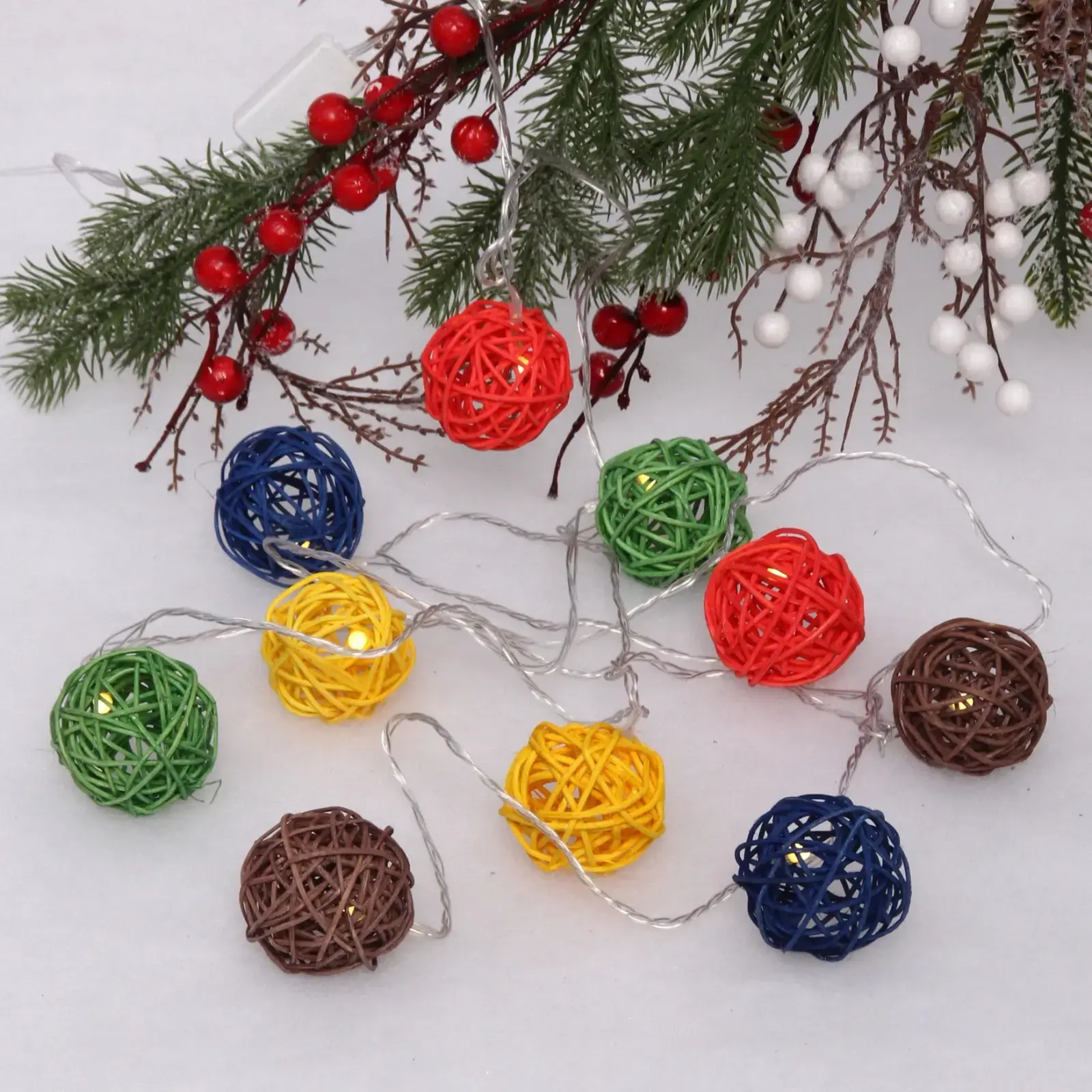 Гирлянда LED длиной 2 метра с 10 цветными шарами диаметром 5 см — это идеальное решение для создания теплой и праздничной атмосферы в вашем доме. Каждый шарик выполнен из плетеного материала, что придает им уникальный и стильный вид. Теплый белый свет создает ощущение уюта и комфорта, идеально подходя для новогодних праздников или романтических вечеров.