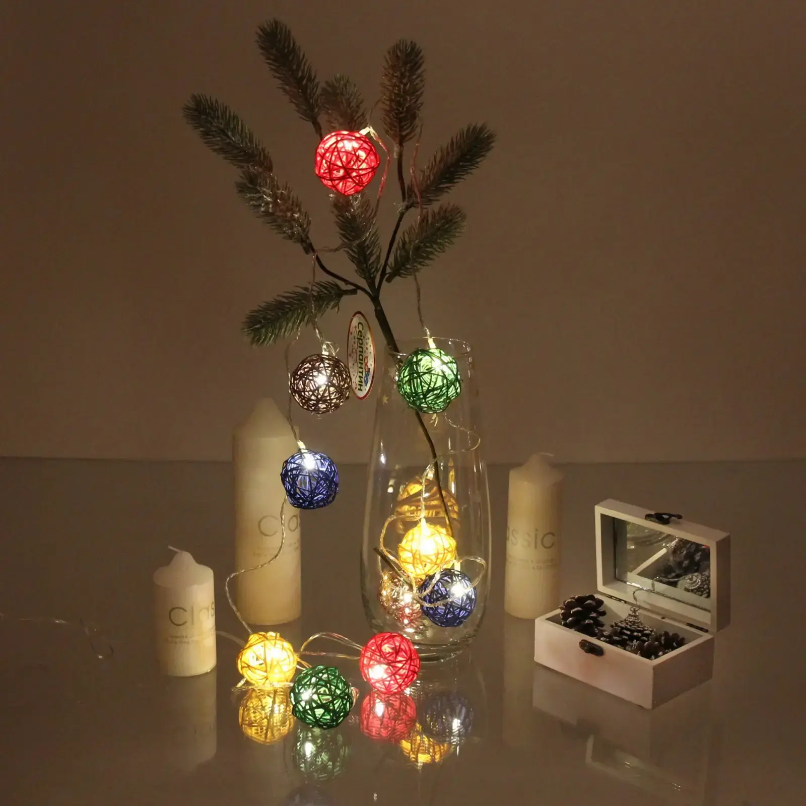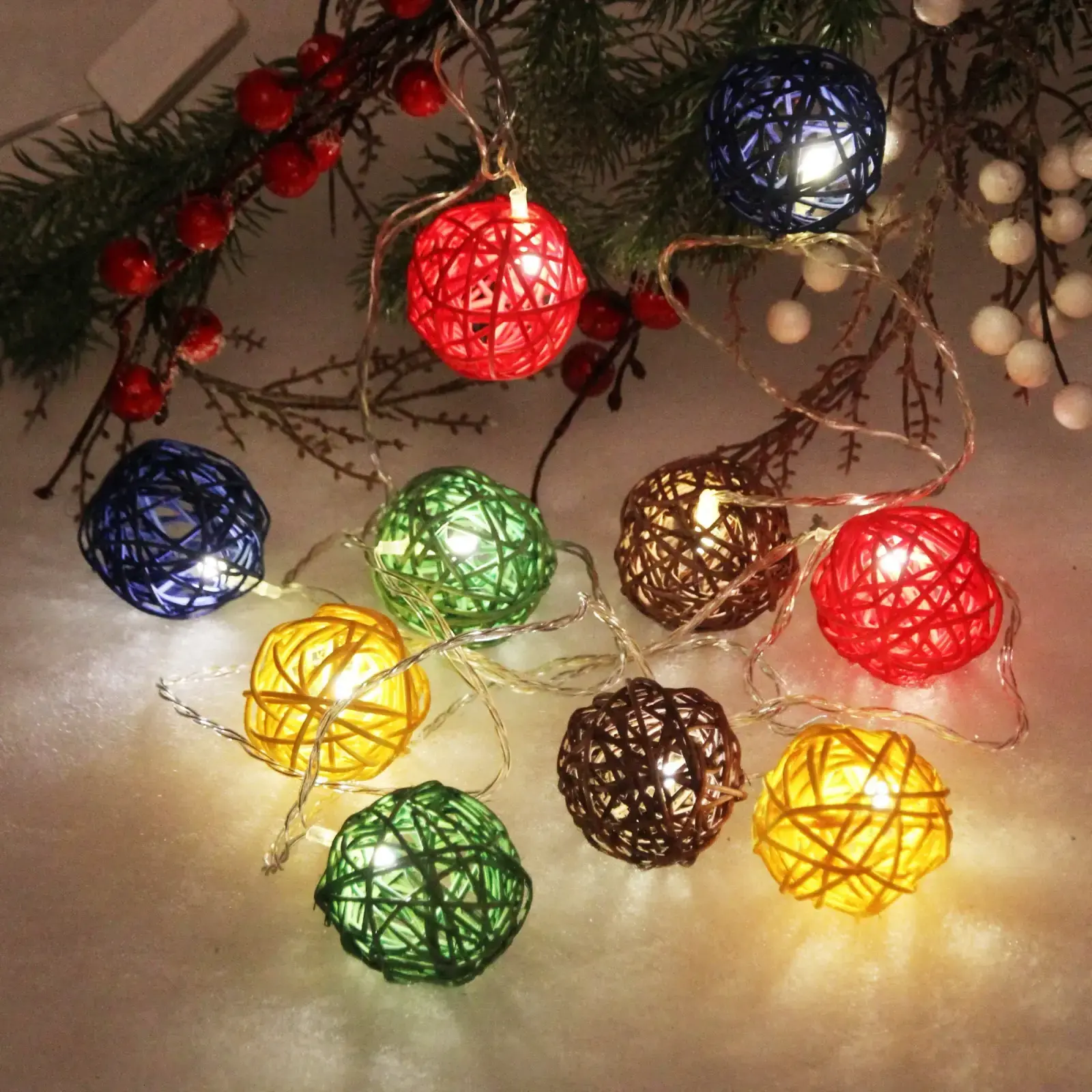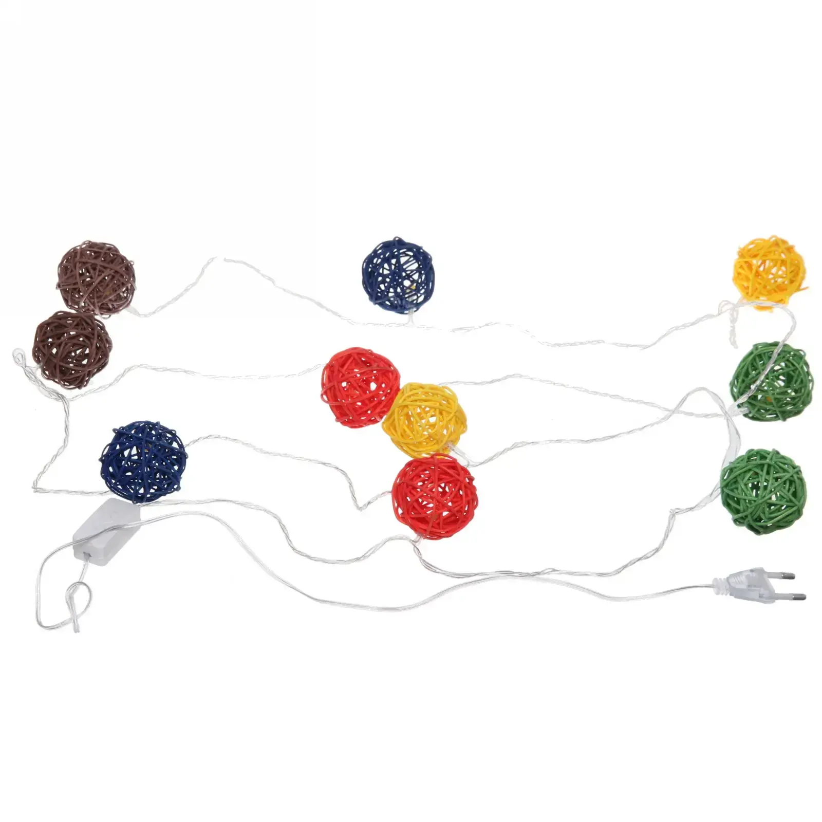 Гирлянда LED длиной 2 метра с 10 цветными шарами диаметром 5 см — это идеальное решение для создания теплой и праздничной атмосферы в вашем доме. Каждый шарик выполнен из плетеного материала, что придает им уникальный и стильный вид. Теплый белый свет создает ощущение уюта и комфорта, идеально подходя для новогодних праздников или романтических вечеров.