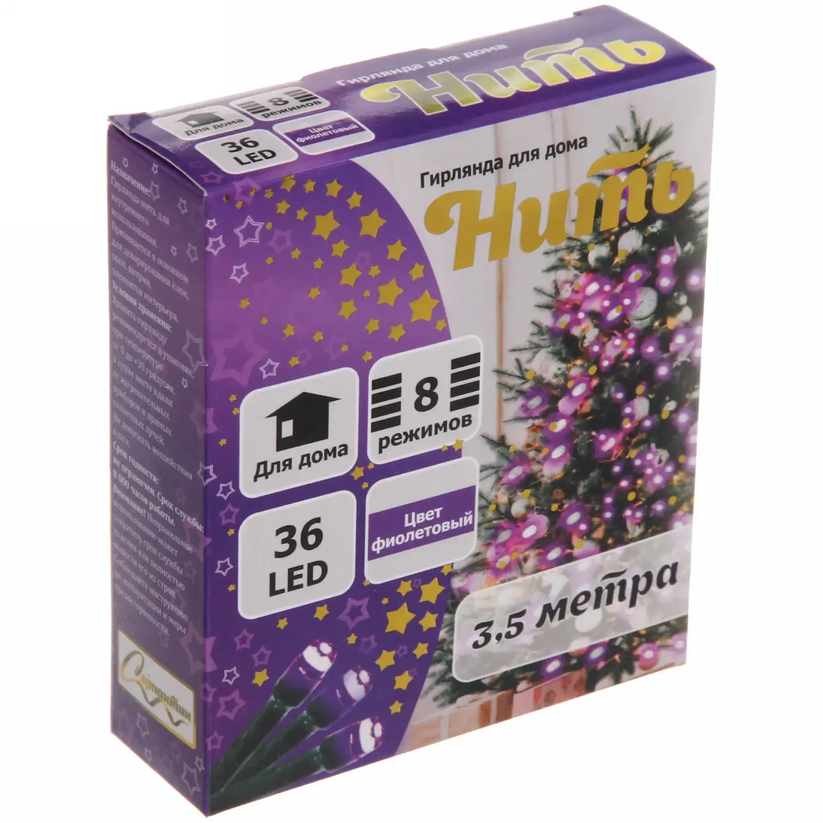 Гирлянда выполнена из качественных материалов, что обеспечивает её долговечность и надежность. Фиолетовый свет создает сказочную атмосферу, а возможность выбора из 8 режимов позволяет вам адаптировать освещение под любое настроение. Эта гирлянда станет не только украшением, но и практичным элементом декора, который легко использовать и хранить.