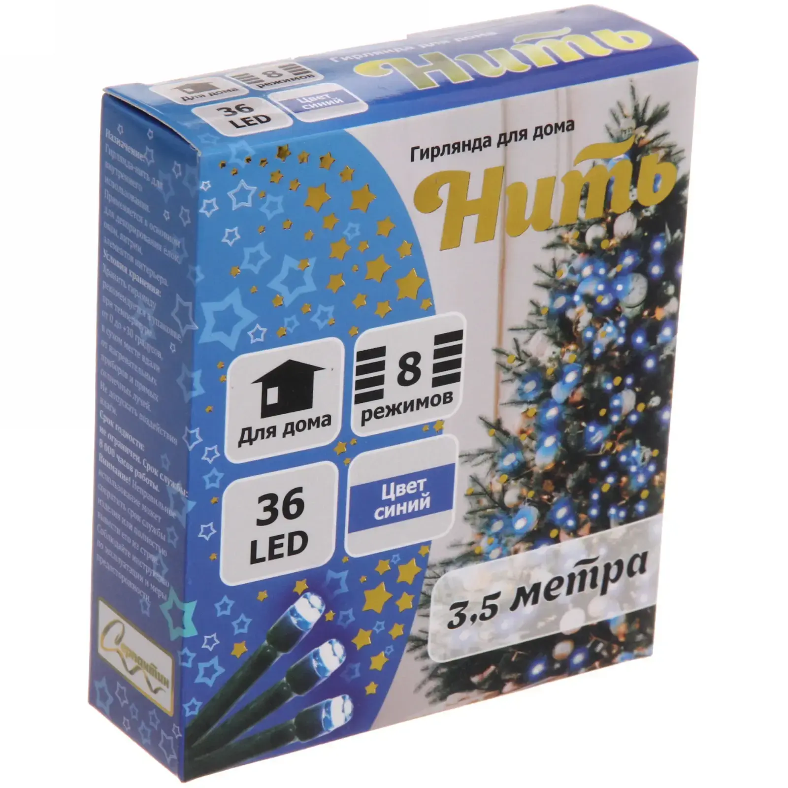 Гирлянда LED 'Нить' наполнит ваш дом сияющим синим светом, превращая обычное пространство в сказочную зимнюю декорацию. Идеальное решение для украшения новогодней елки, окон и стен.