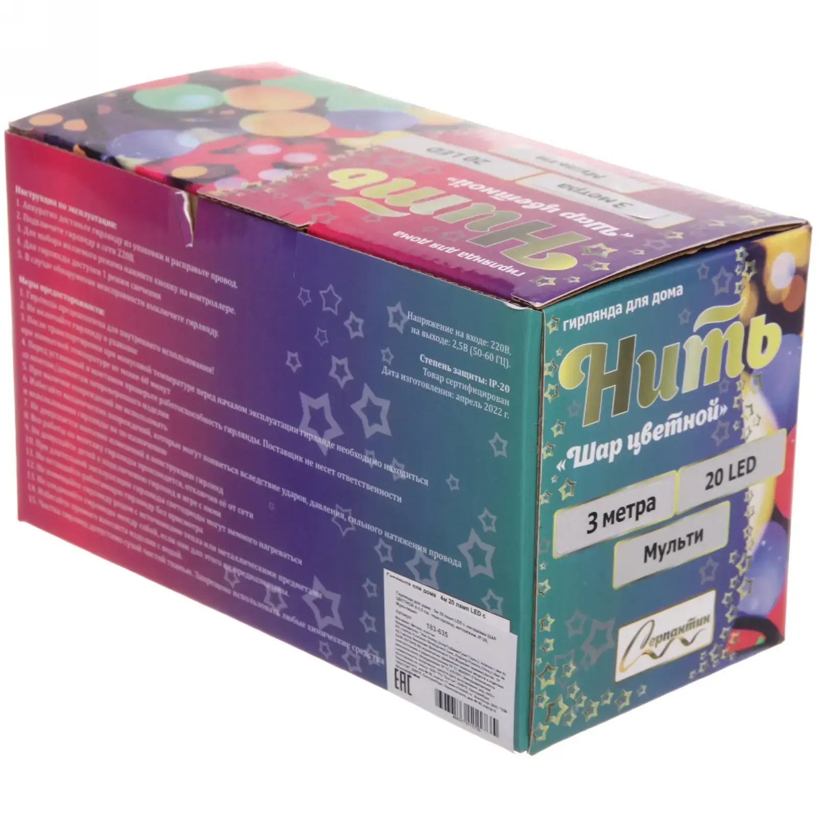 Гирлянда с 20 разноцветными LED-лампами в виде шаров диаметром 3.5 см — идеальное решение для декора интерьера и уличного оформления. Автоматическая смена режимов свечения подарит волшебство новогодних праздников или романтический уют для вечеринок.