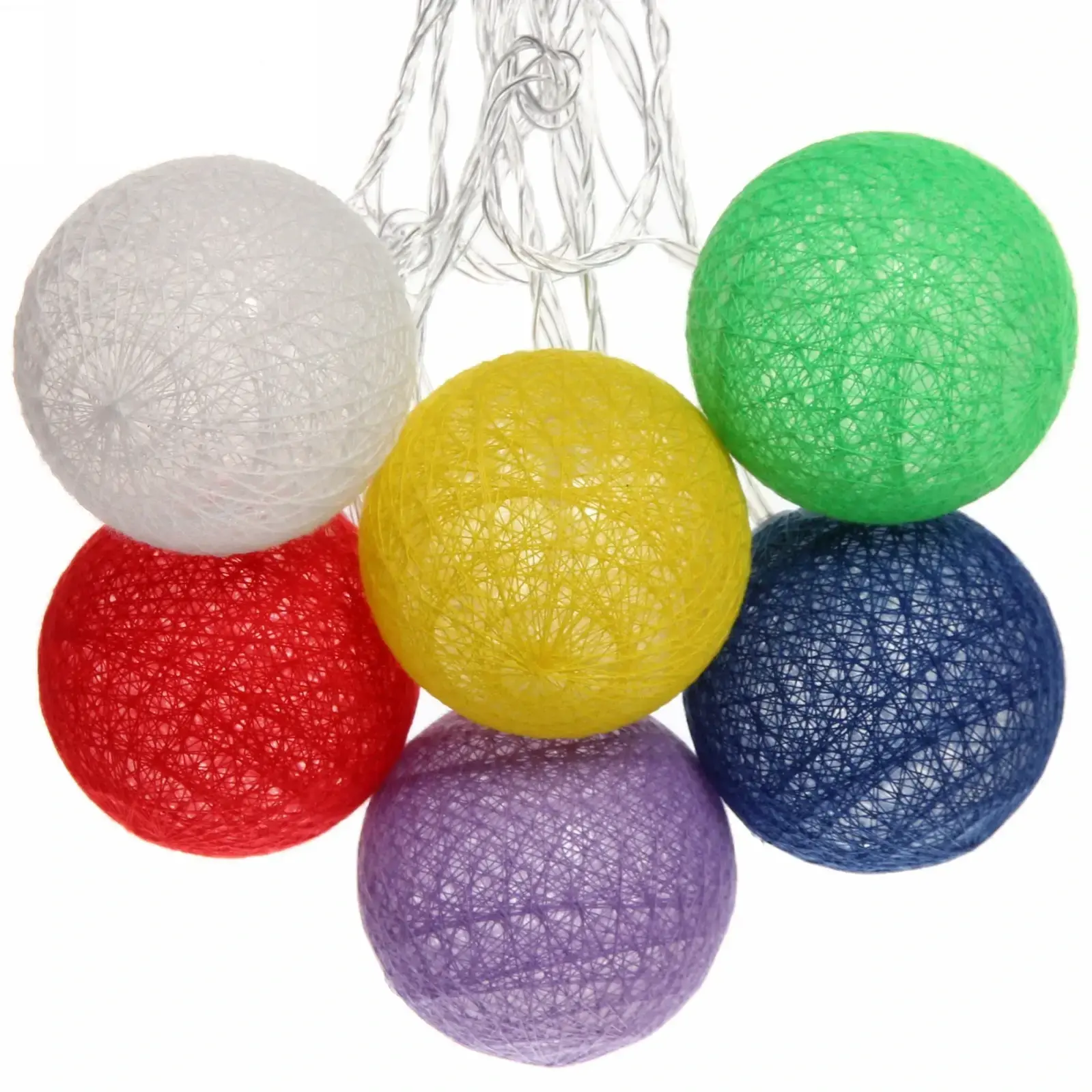 Хотите мгновенно создать тёплую атмосферу у себя дома или подготовиться к празднику? Эта декоративная гирлянда длиной 4 метра с 20 LED-лампами идеальна для зонирования пространства, украшения гостиной, детской, спальни или праздничного стола. Цветные шары диаметром 6 см из плетёных нитей рассеивают мягкий свет, наполняя комнату уютом и радостью.