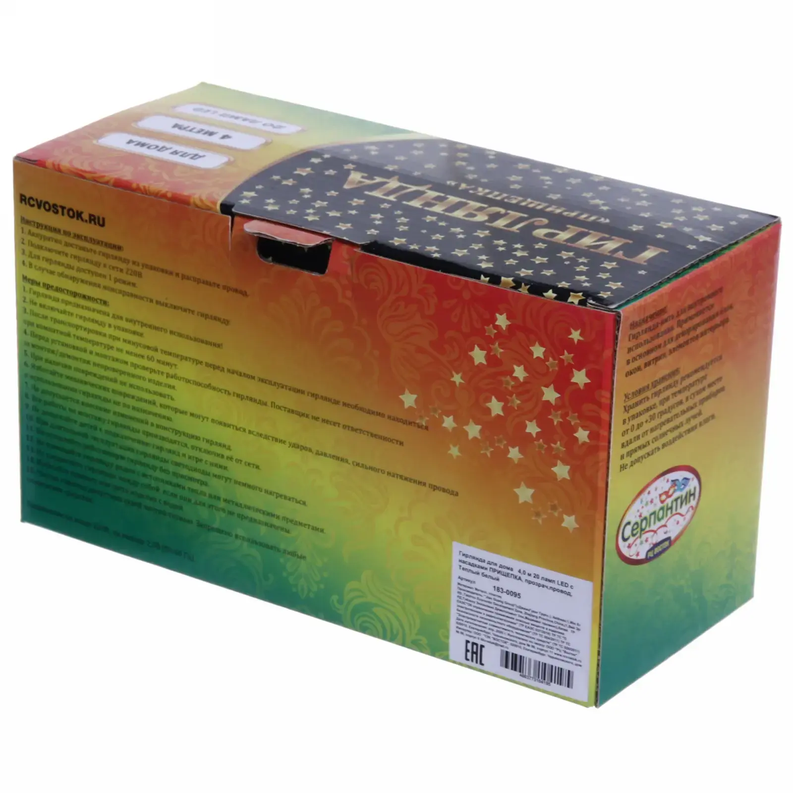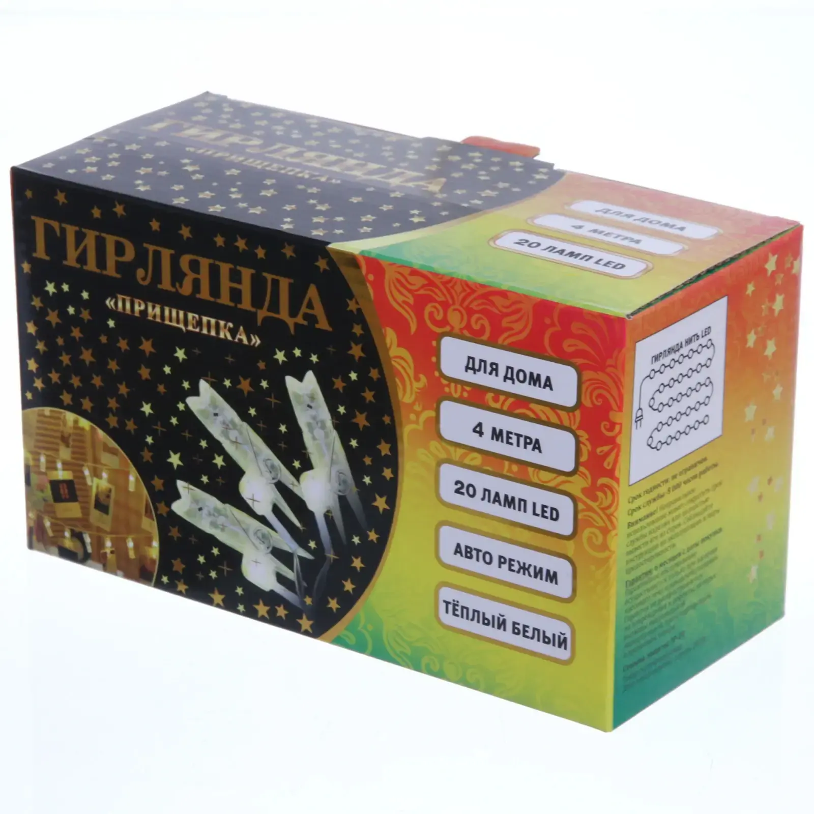 Гирлянда для дома 4,0 м 20 ламп LED с насадками ПРИЩЕПКА, прозрач.провод, IP-20, Теплый белый