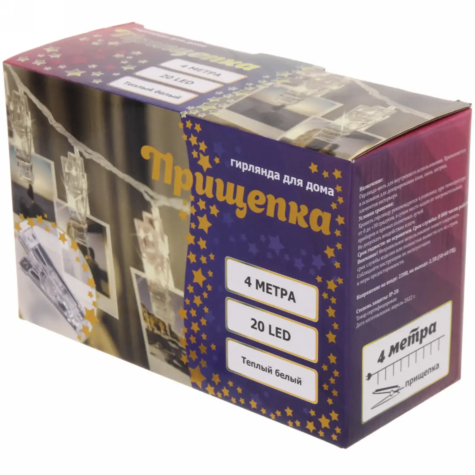 Гирлянда LED 'Прищепка' станет идеальным решением для декора вашего дома, создавая уютную атмосферу мягким теплым светом. Простота использования и элегантный дизайн делают её незаменимой для любого праздника.