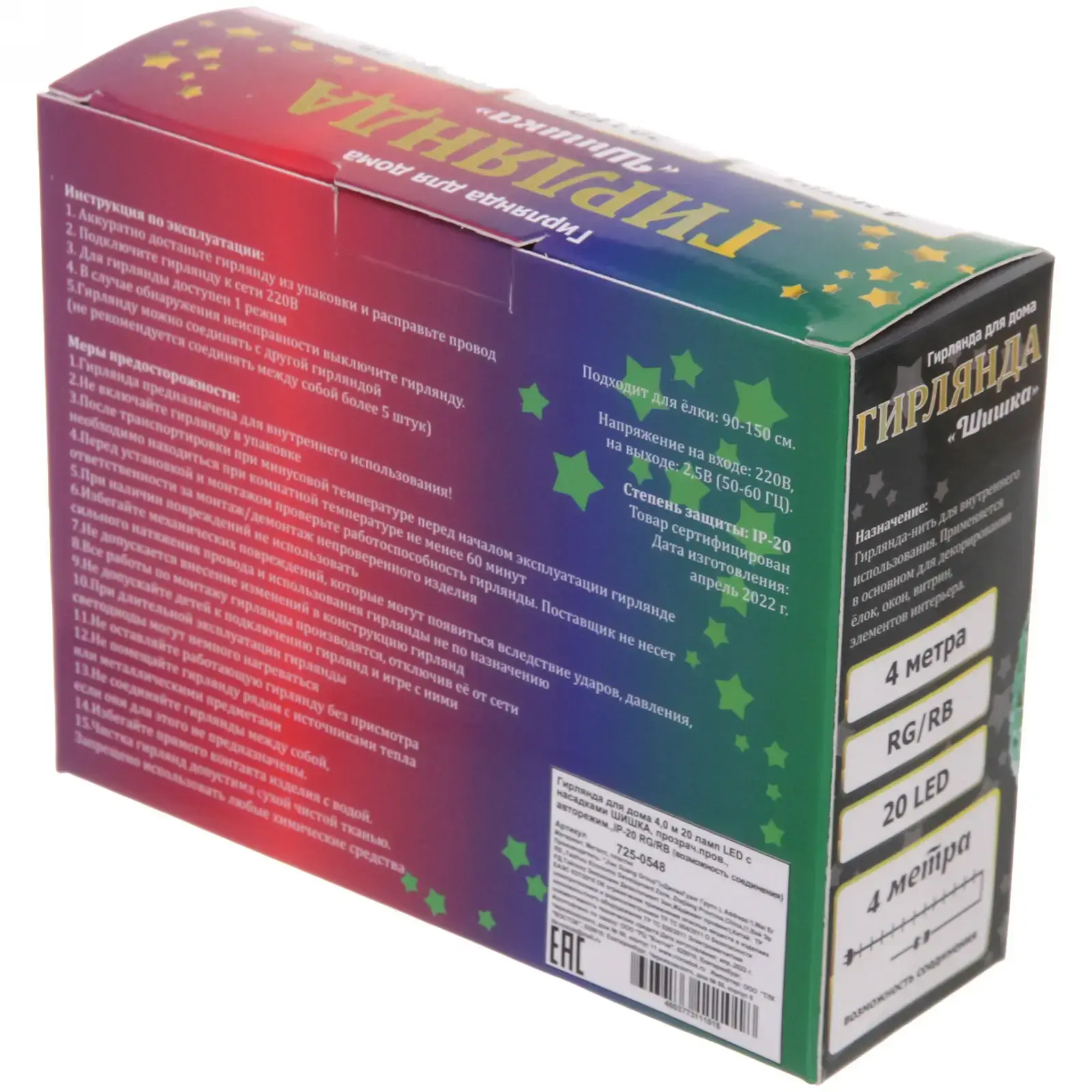 Гирлянда для дома 4,0 м 20 ламп LED с насадками ШИШКА, прозрач.пров., авторежим.,IP-20 RG/RB (возможность соединения)