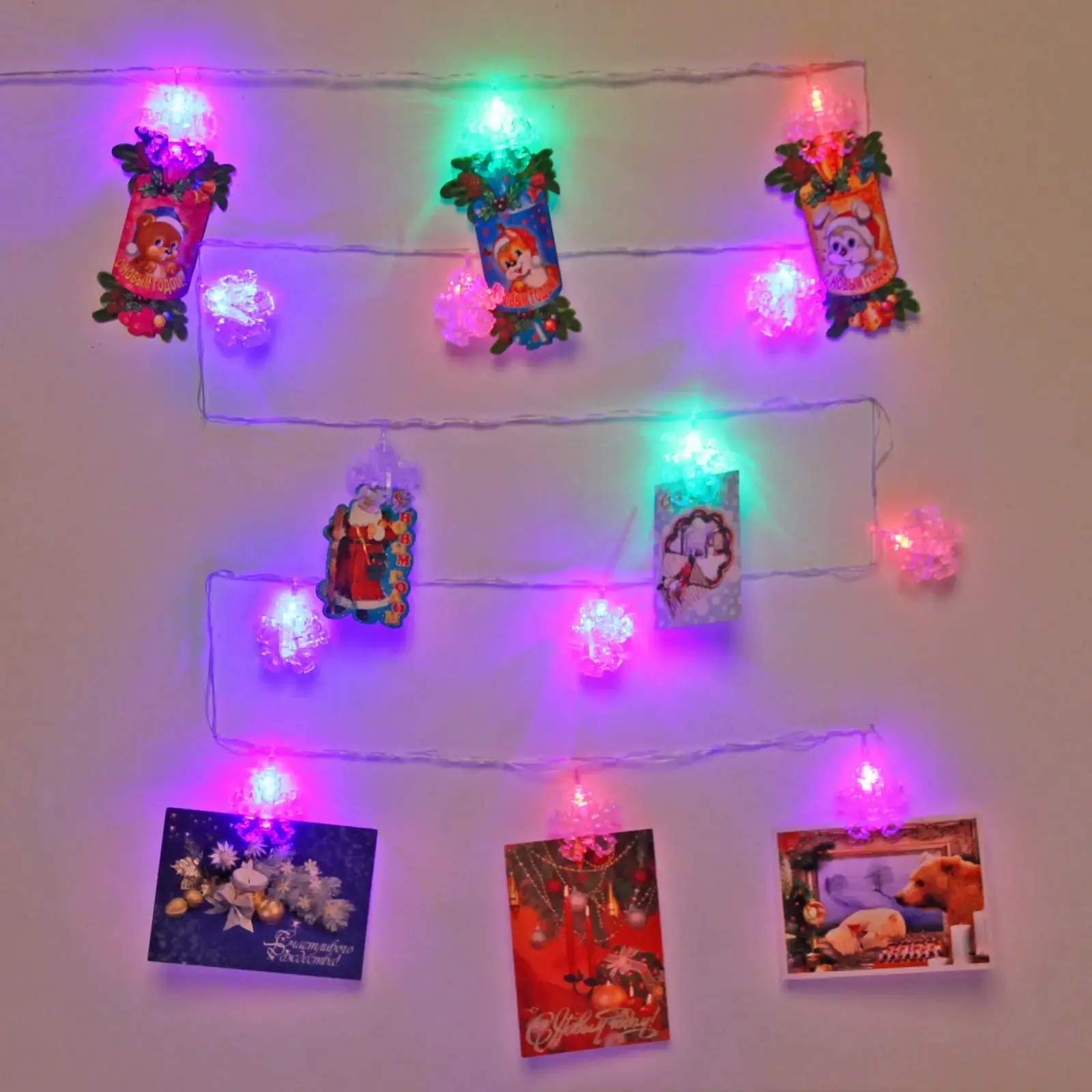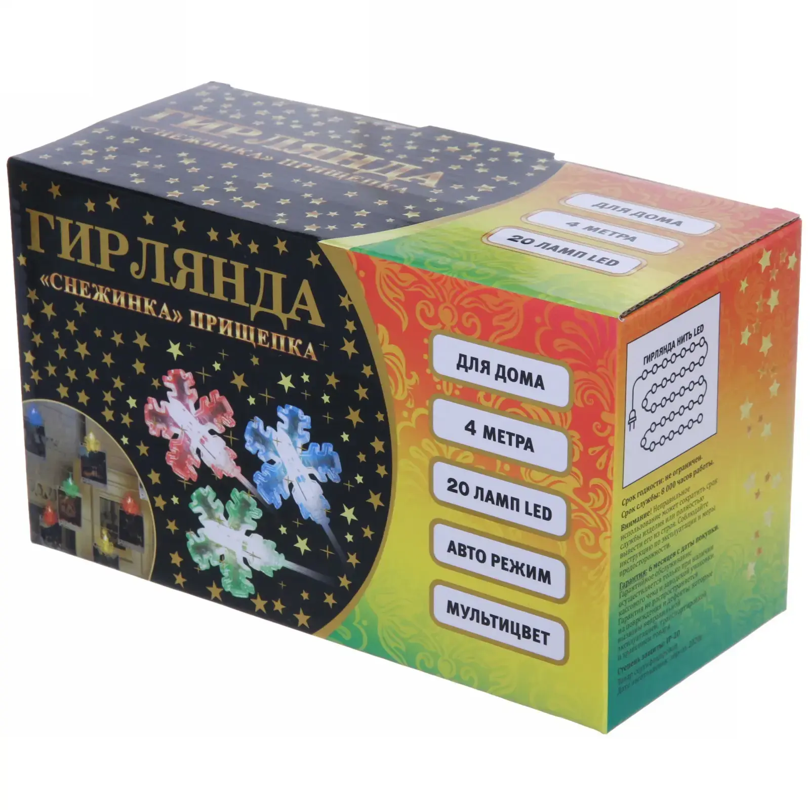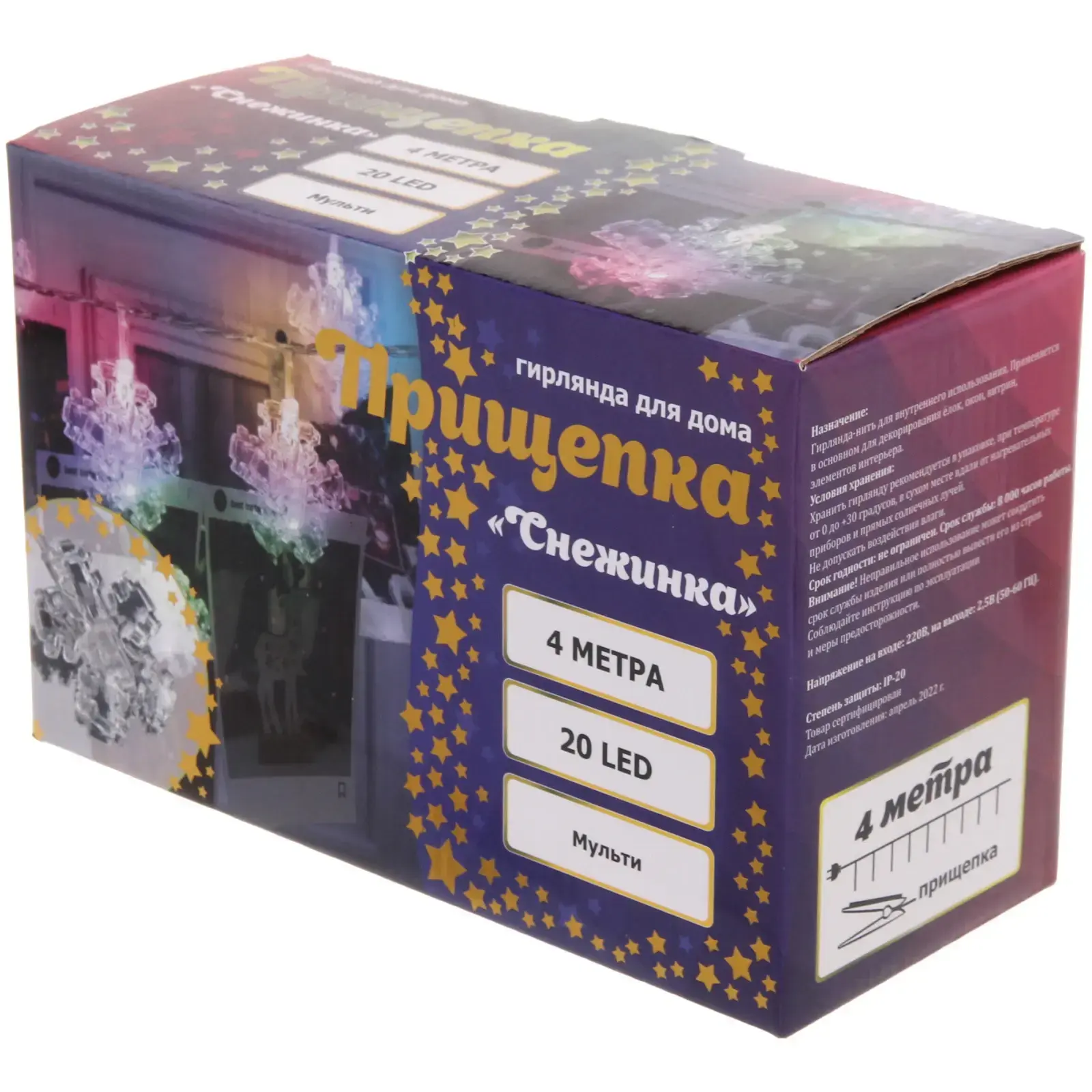 Гирлянда длиной 4 метра с 20 светодиодными лампами в форме снежинок — это идеальное решение для создания уютной и праздничной атмосферы в вашем доме. Мультицветное освещение добавит ярких красок в любое пространство, а прищепки позволят легко закрепить гирлянду в любом месте. Используйте её для украшения стен, окон или даже для создания оригинального декора на столе.