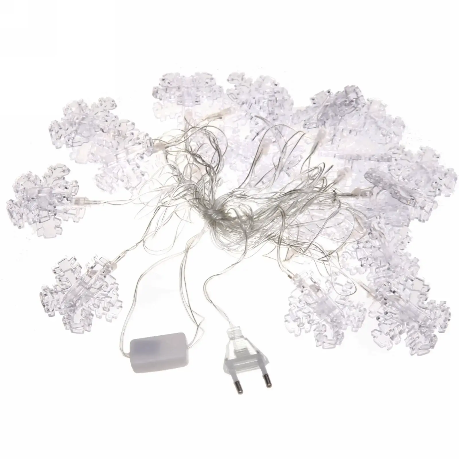 Гирлянда состоит из 20 ламп LED, каждая из которых излучает яркий и насыщенный свет. Декоративные элементы в форме снежинок выполнены из прозрачного пластика, что создает эффект легкости и воздушности. Общая длина гирлянды составляет 4 метра, что позволяет украсить даже большие пространства. Не упустите возможность сделать ваш дом более уютным и праздничным с гирляндой «Снежинка»!