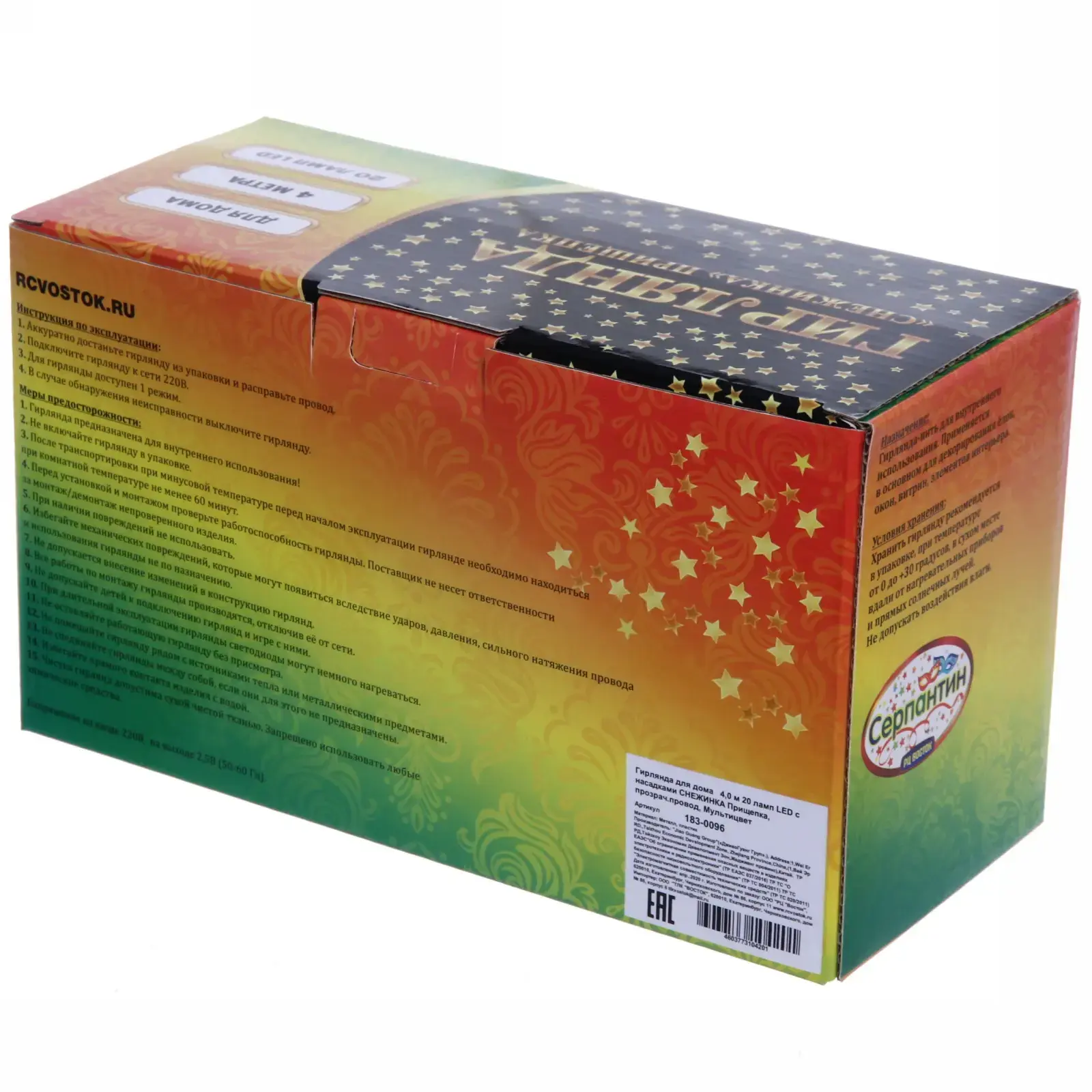 Гирлянда предназначена для внутреннего использования и отлично подходит для новогодних праздников, дней рождения и других торжеств. Она проста в использовании: просто подключите её к сети и наслаждайтесь волшебным светом. Благодаря автоматическому режиму, вы можете выбрать различные варианты свечения, что делает её универсальным элементом декора.