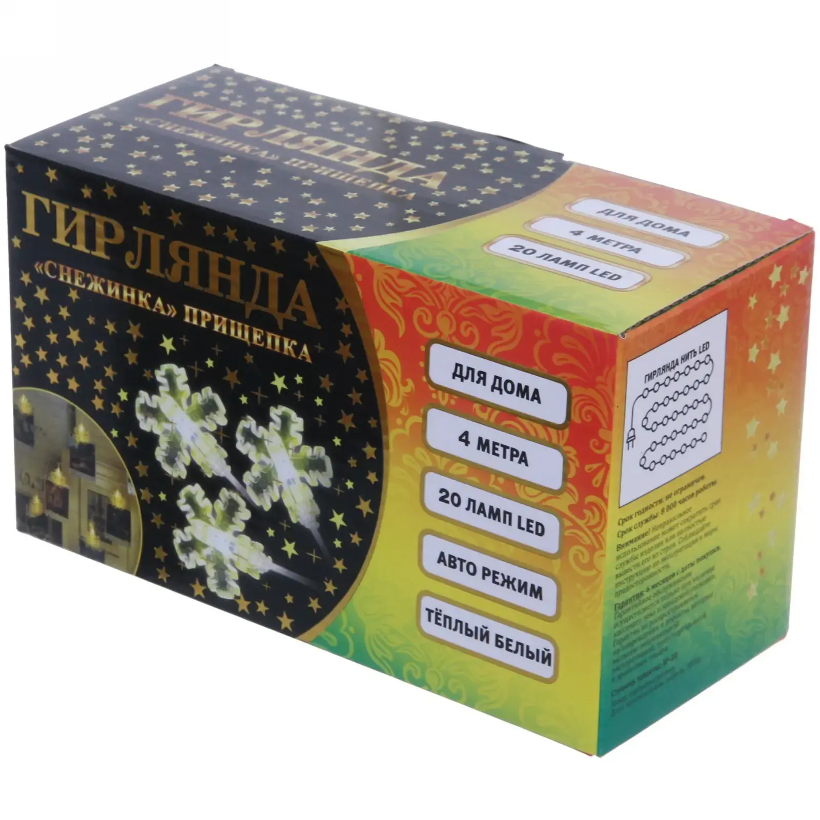 Гирлянда длиной 4 метра с 20 LED лампами в форме снежинок — это идеальное решение для создания праздничного настроения в вашем доме. Теплый белый свет добавит уюта и сделает ваш интерьер более привлекательным. Используйте гирлянду для украшения елки, окон, дверных проемов или стен, чтобы создать волшебную атмосферу в любое время года.
